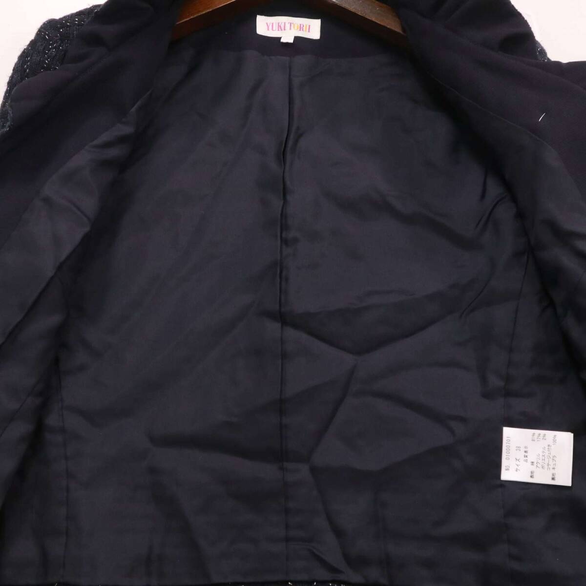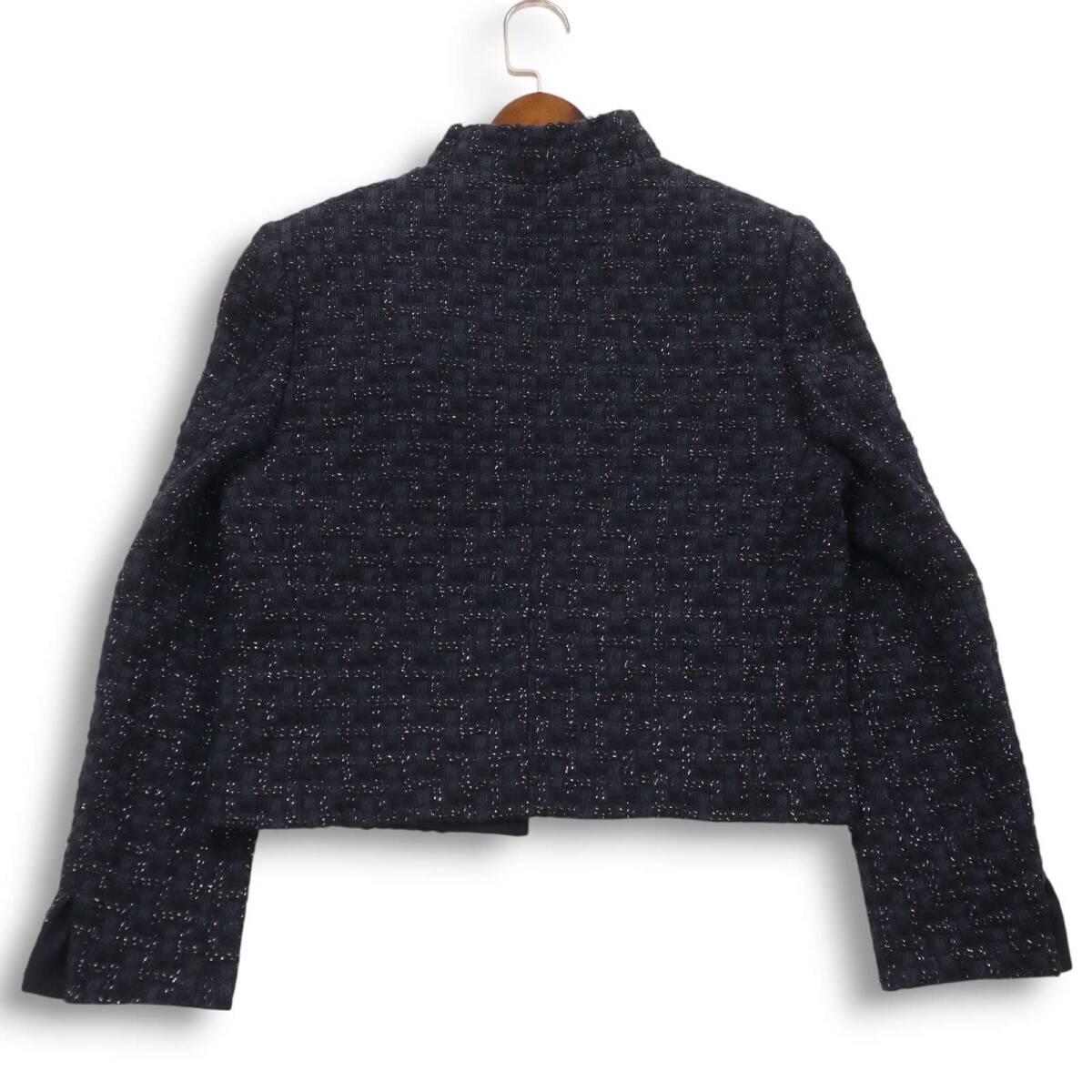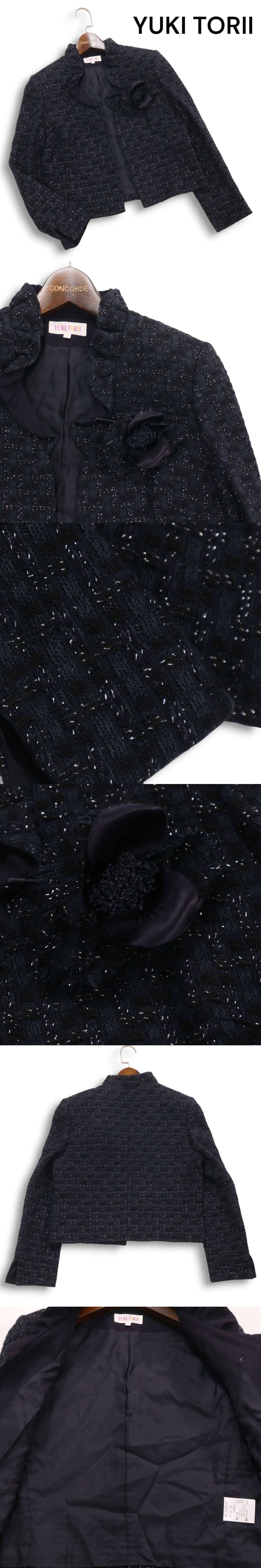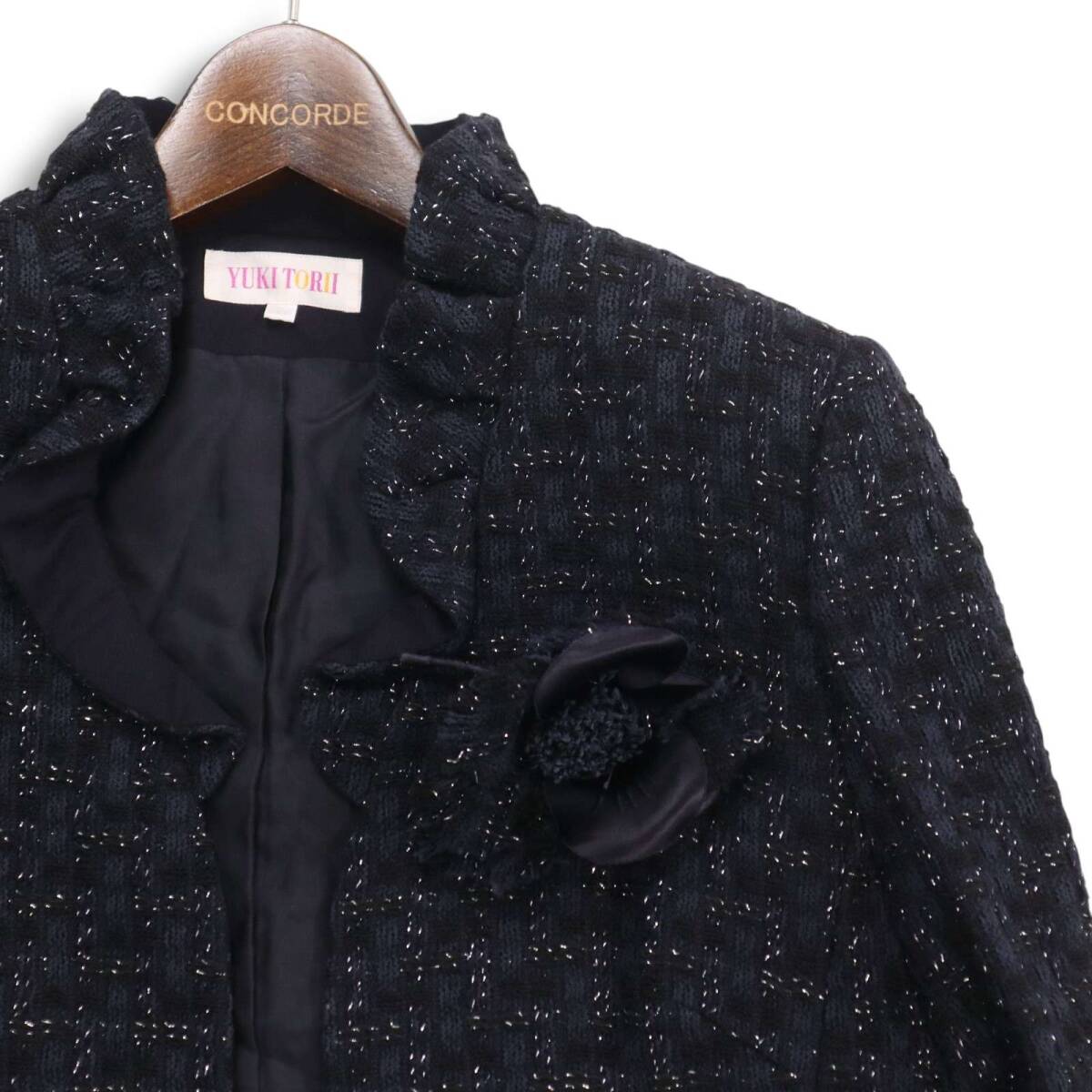 YUKI TORII ユキトリイ 秋冬 コサージュ♪ ラメ チェック フリル ジャケット 羽織り Sz.38 レディース 紺
