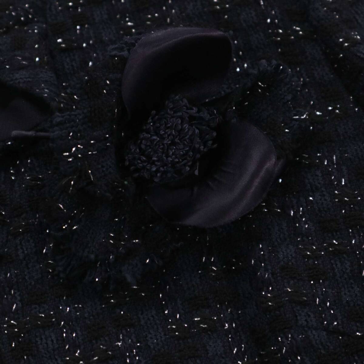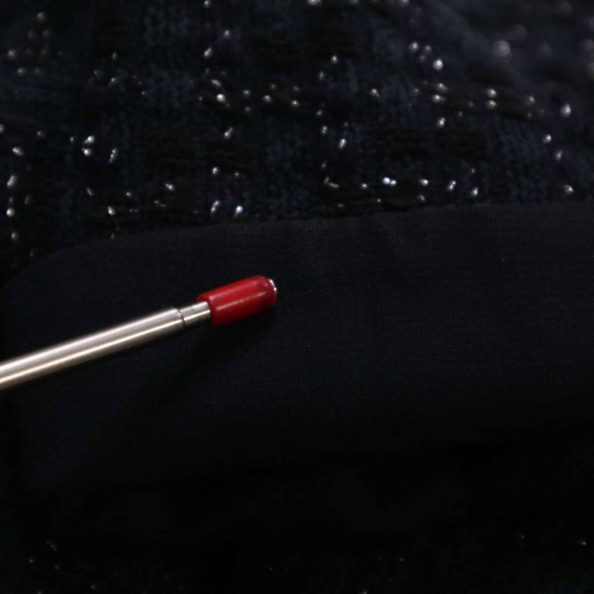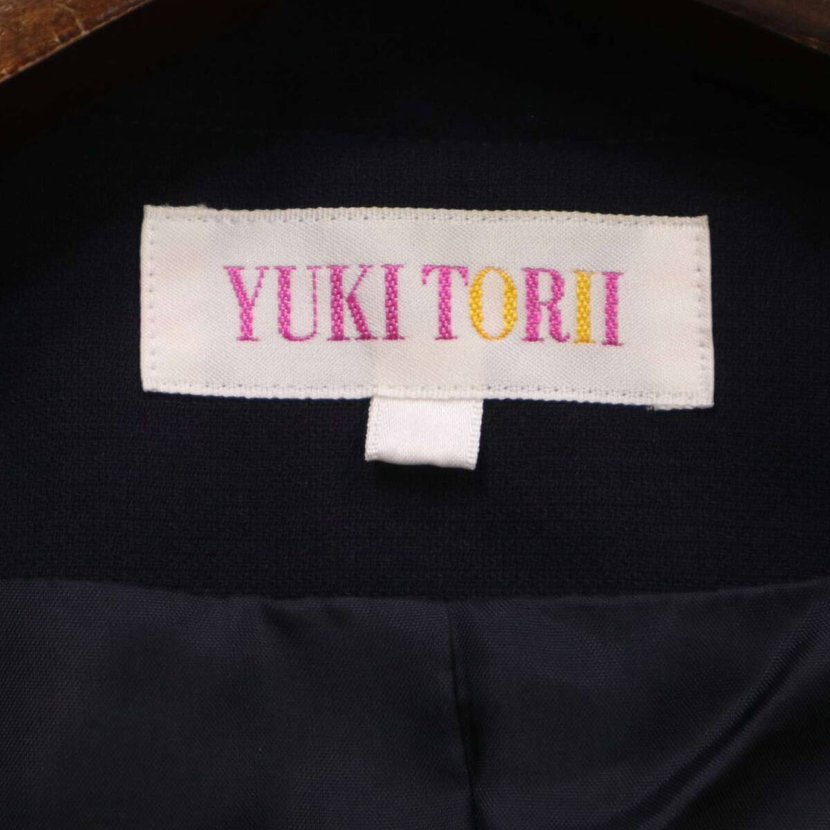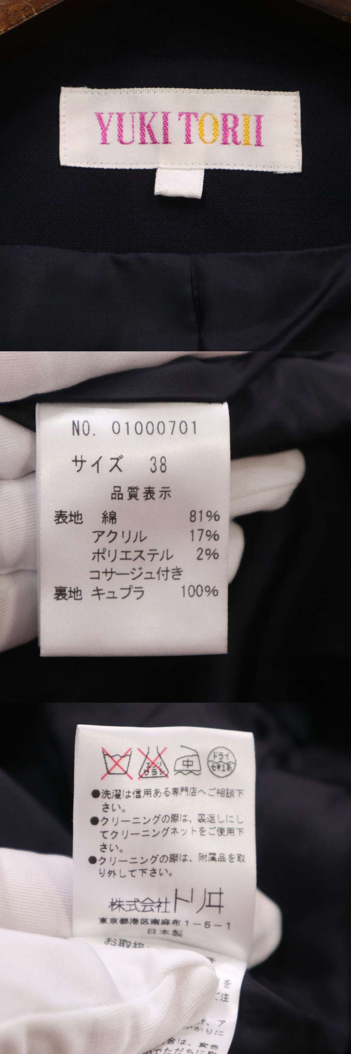 YUKI TORII ユキトリイ 秋冬 コサージュ♪ ラメ チェック フリル ジャケット 羽織り Sz.38 レディース 紺