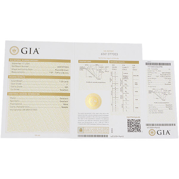 宝石 | 中石ダイヤモンド1.33ct カラー・F クラリティ・VS1 カット・3EX |