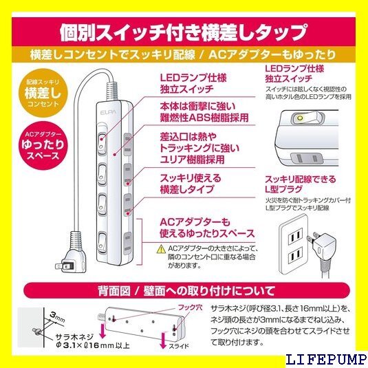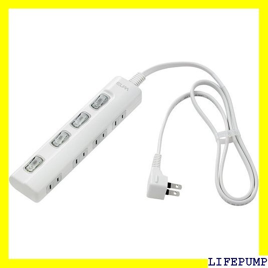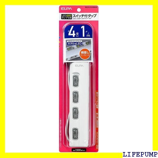 エルパ ELPA スイッチ付タップ コンセント 延長コード LED 横差し 4個口 1m WLS-LY41EB W 538