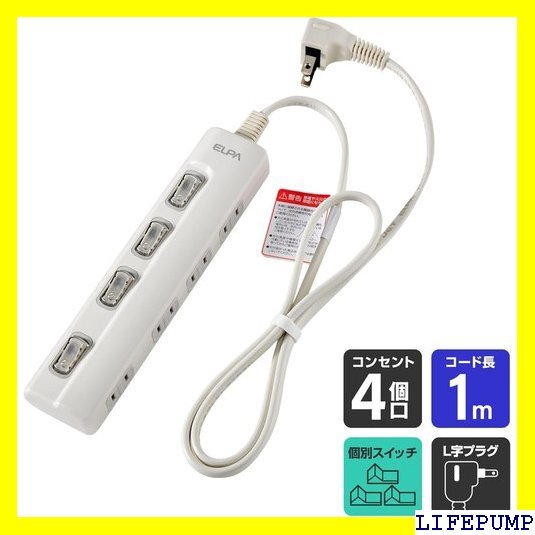 エルパ ELPA スイッチ付タップ コンセント 延長コ LED 横差し 4個口 1m WLS-LY41EB W 538