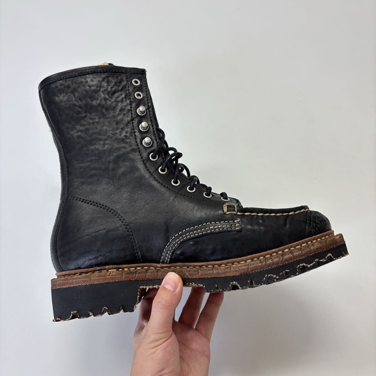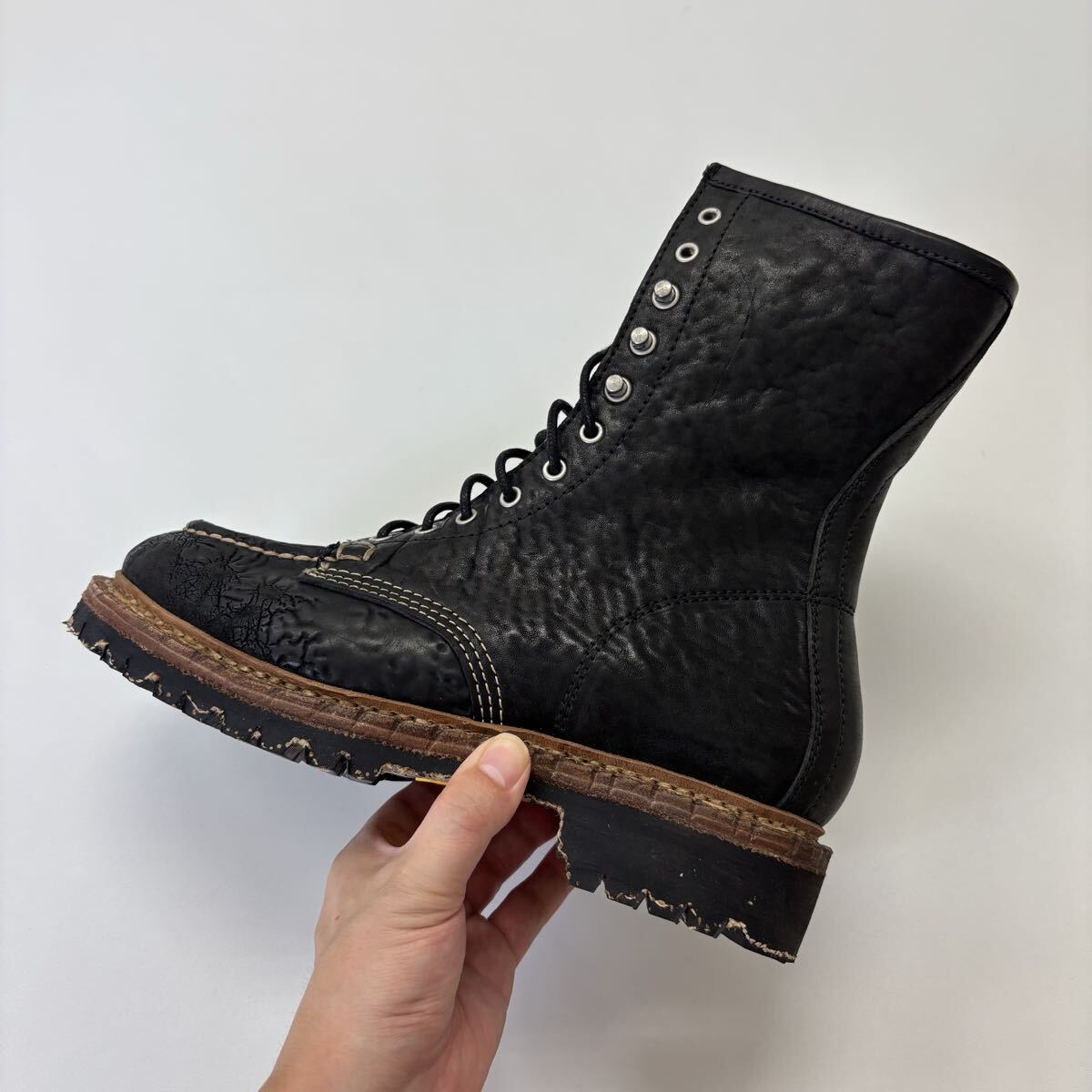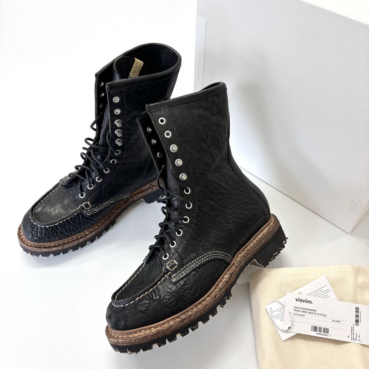 24aw 2024 新品 VISVIM ビズビム SCOUT MOC BOOTS HI-FOLK 0124202002009 特殊加工 コードバンレザー ブーツ BLACK サイズ 9.5 708-1230