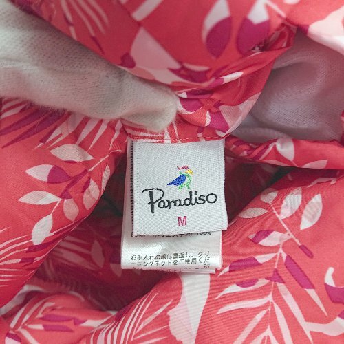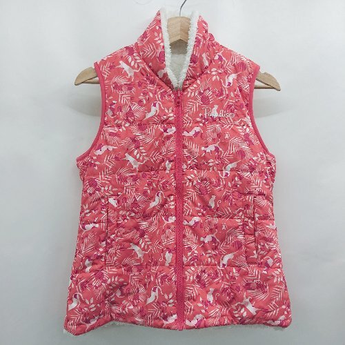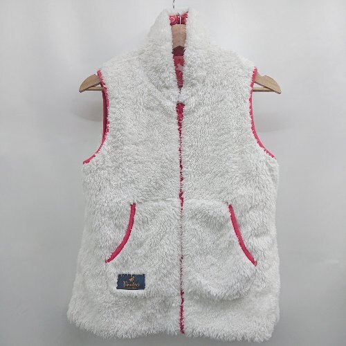 ◇ ⊇ Paradiso 模様入り ノースリーブ 中ボアダウンベスト サイズ表記なし ホワイト レッド系 レディース E