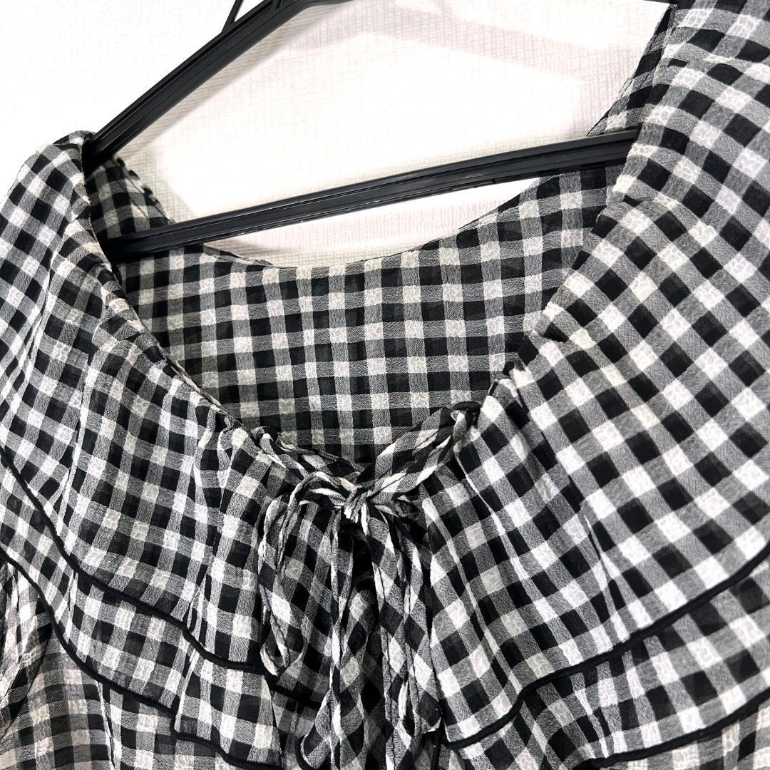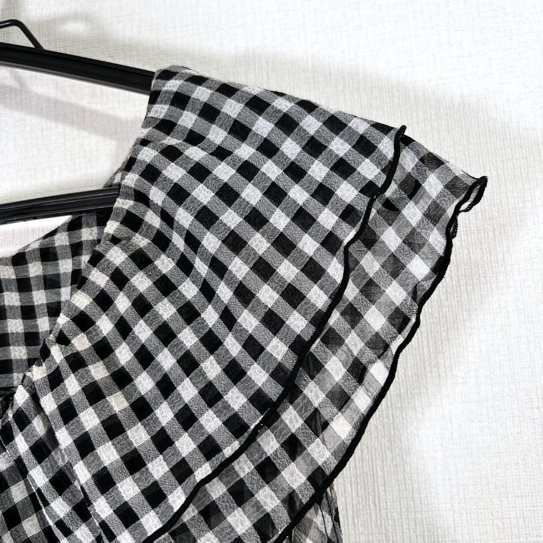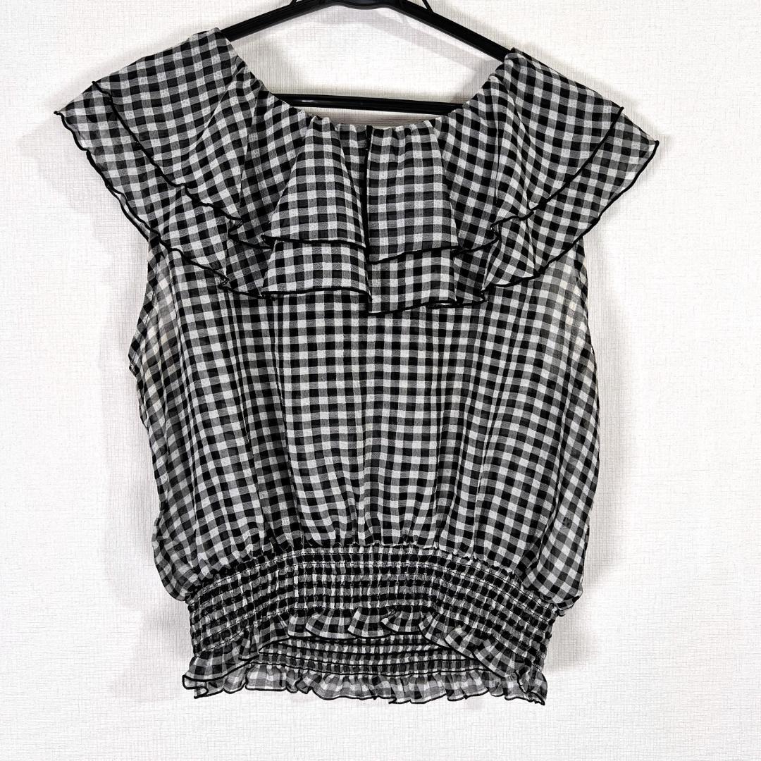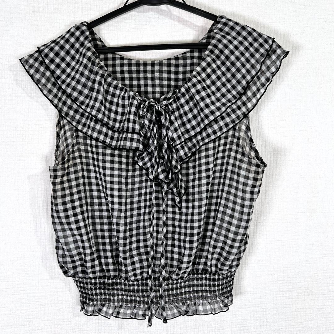 【LOWRYS FARM】ローリーズファーム モノクロ チェック柄 袖なし ノースリーブ カットソー トップス レディース Lサイズ【a008】
