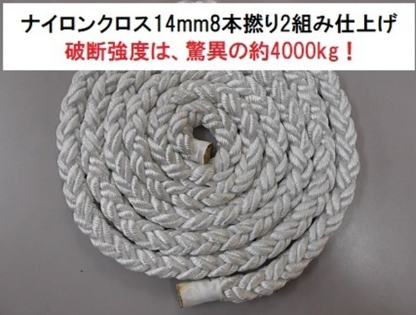 ■AFボート 係船ロープ 牽引ロープ 日本製ナイロンクロス14mm8本撚り2組 20m1本■