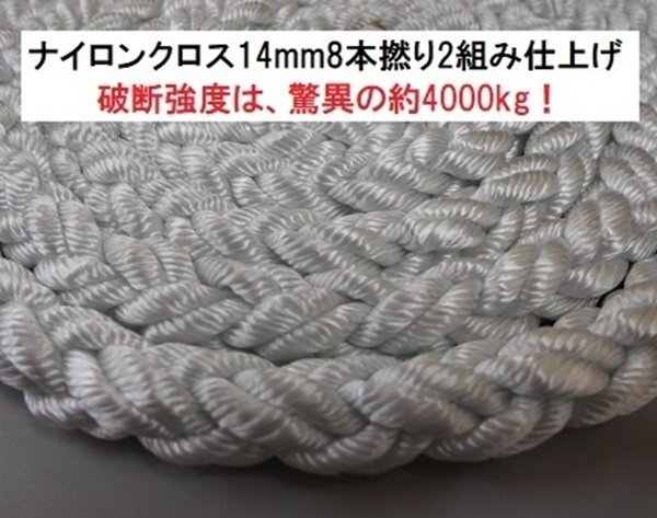 ■AFボート■ 係船ロープ 牽引ロープ 日本製ナイロンクロス14mm8本撚り2組 20m 1本