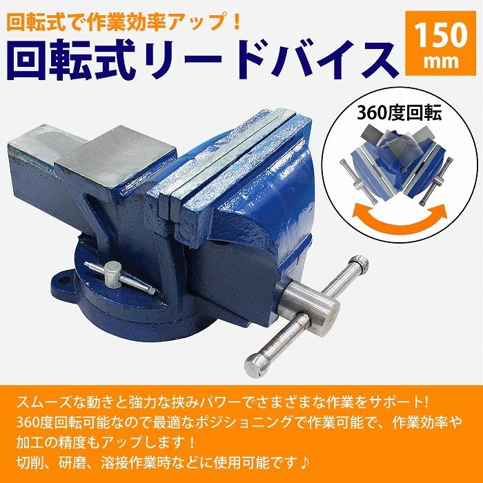 訳あり 口幅 150mm 最大開口 170mm バイス 万力 360度 回転式 卓上 リード ベンチ 3点止 作業 台 溶接 鉄工 固定 締付 工具 テーブル