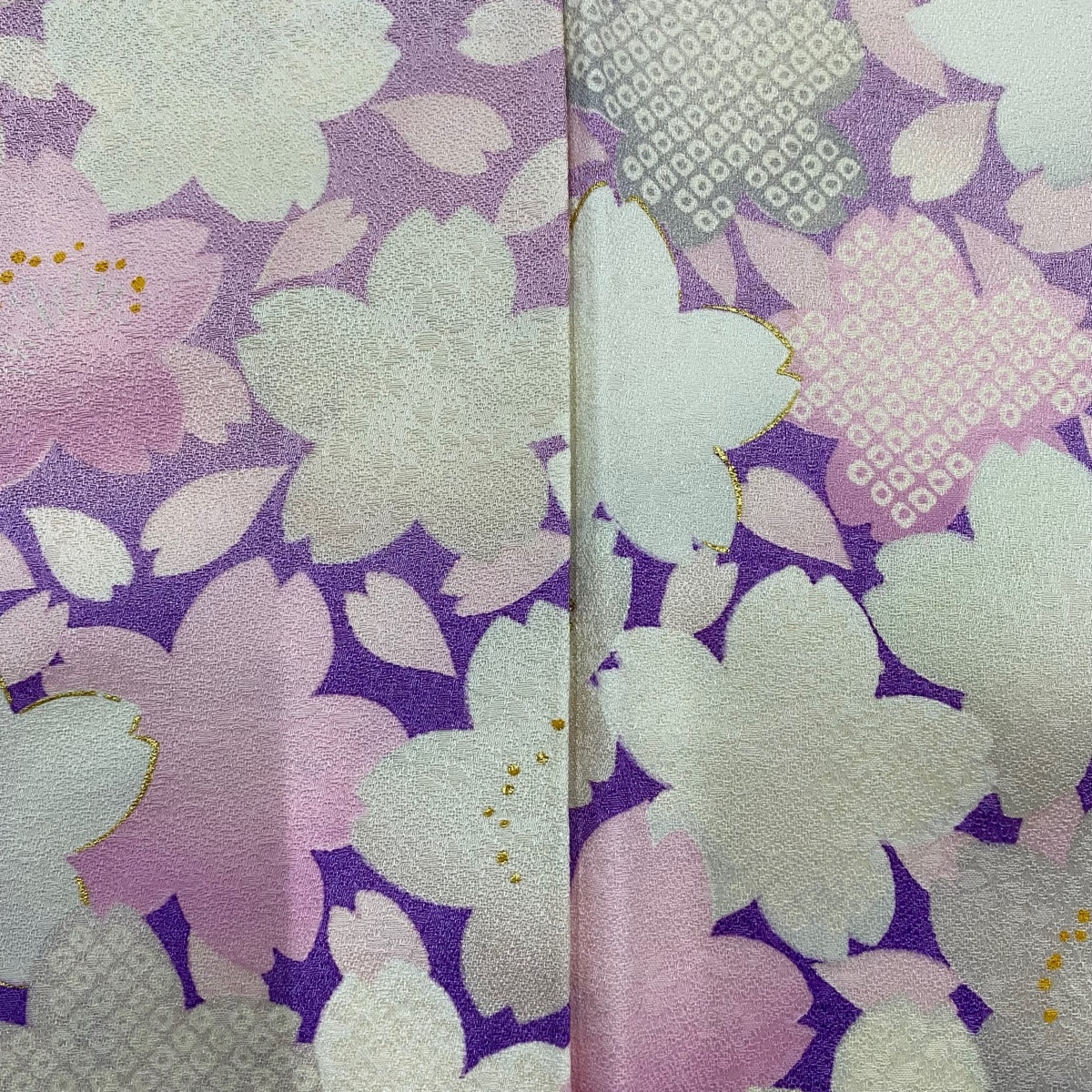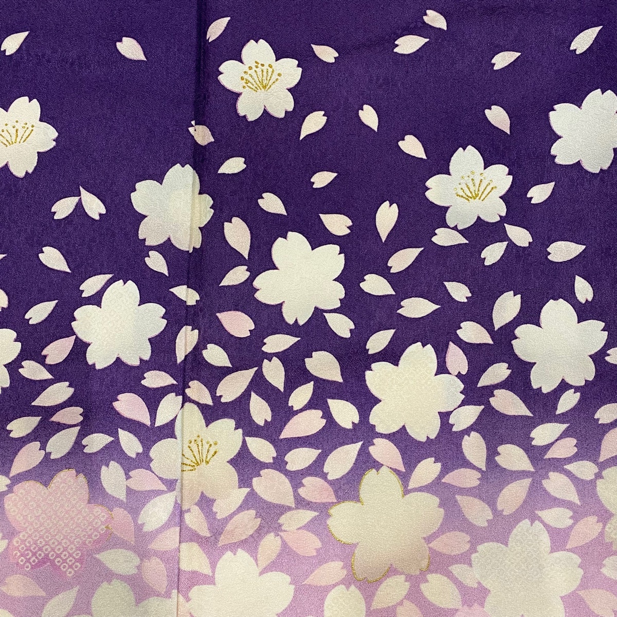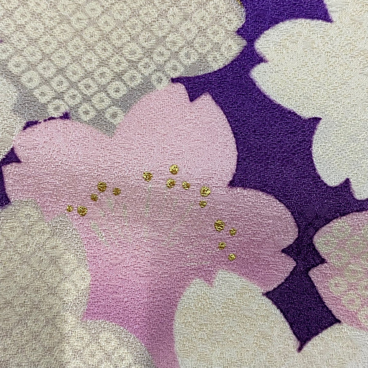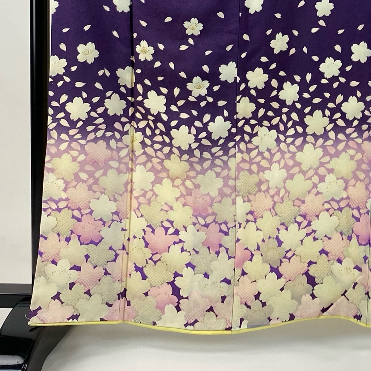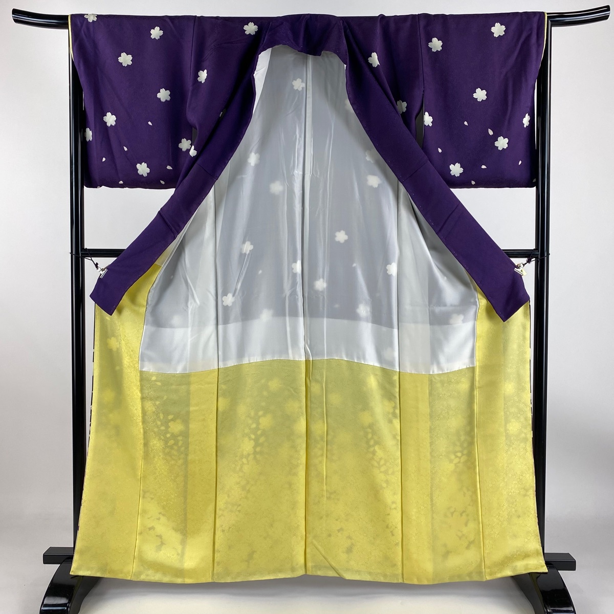 | 訪問着 名品 桜 花びら 箔 金彩 紫 袷 身丈162 裄丈65.5 M 正絹 【中古】 |
