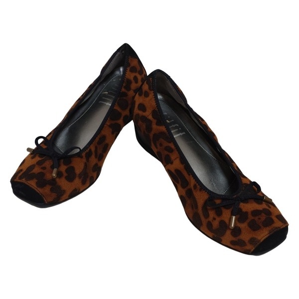 フィットフィット fitfit パンプス 22.5 - ブラウン×ダークブラウン×黒 レディース 豹柄/リボン 靴