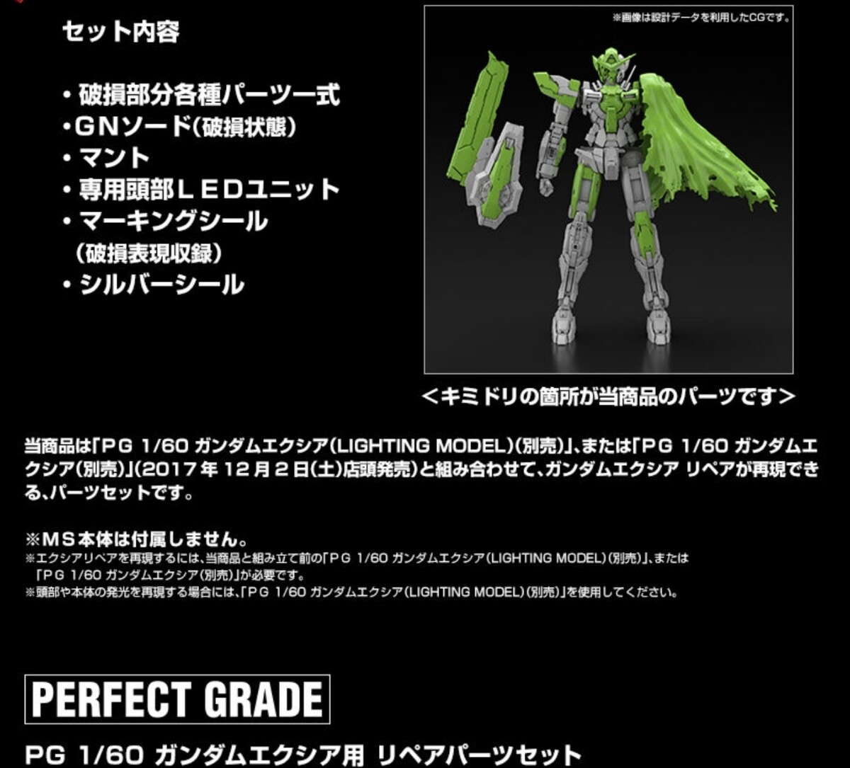 PG ガンダムエクシア用リペアパーツセット GN-001 1/60 プレミアムバンダイ限定 機動戦士ガンダム00(ダブルオー)バンダイ