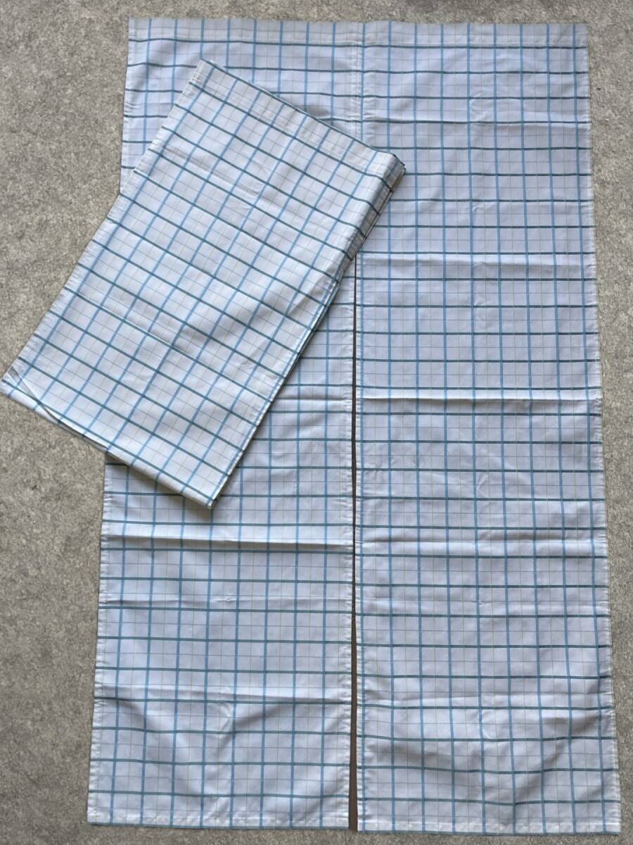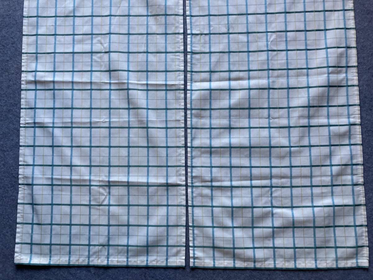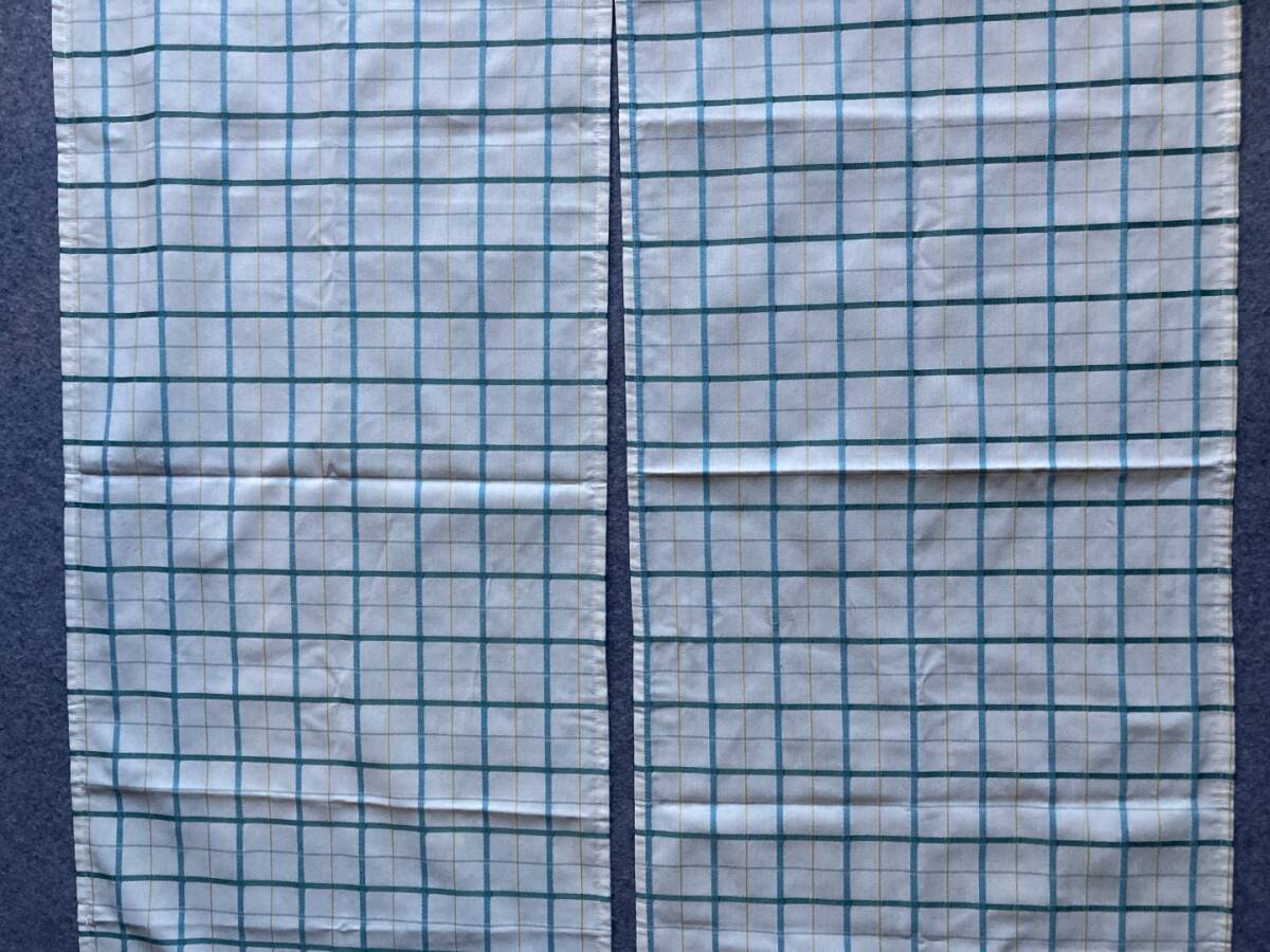 送料込 即決 北欧柄 川島織物セルコン 暖簾 のれん 2枚セット 88cm×146 ブルー グリーン チェック
