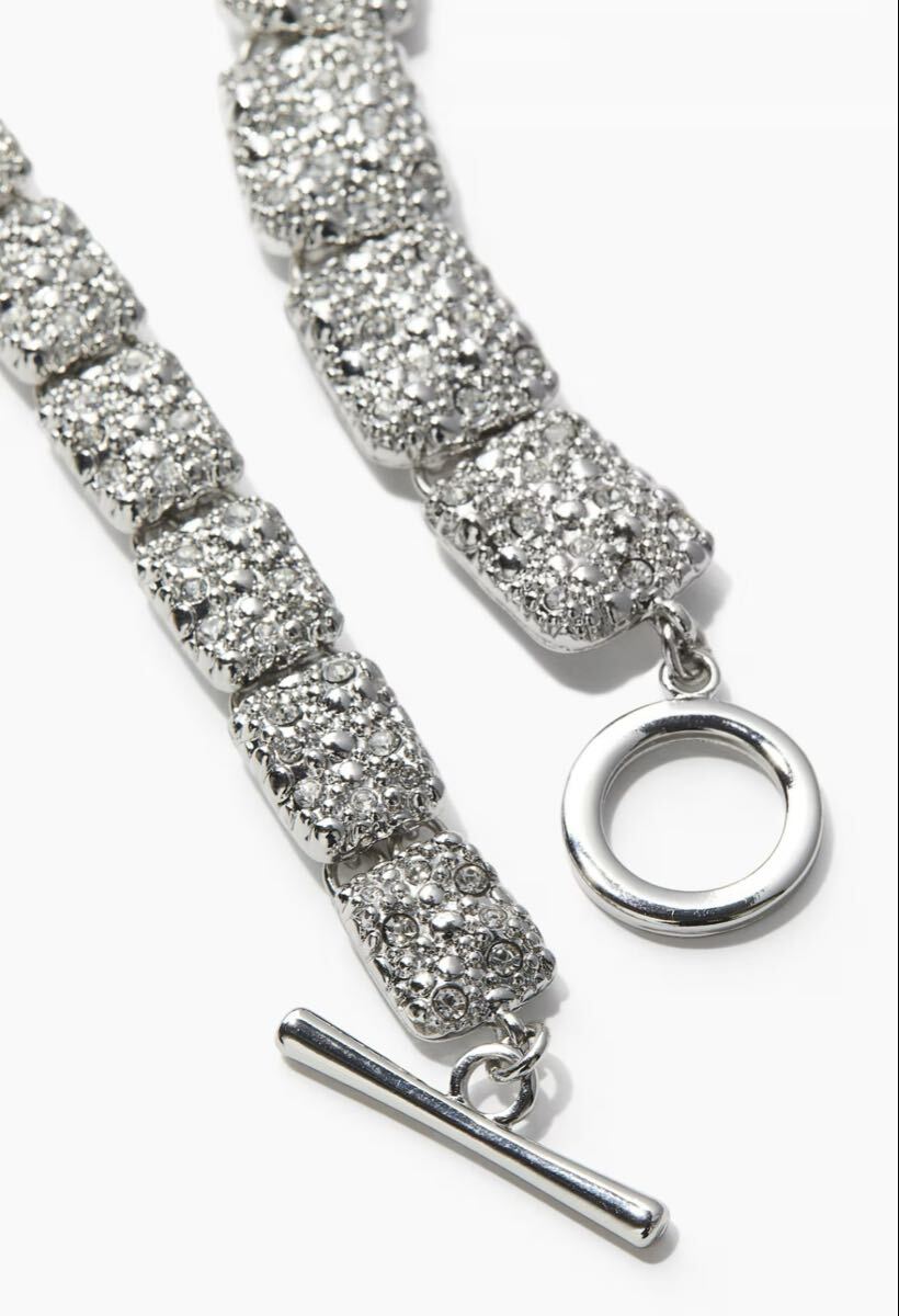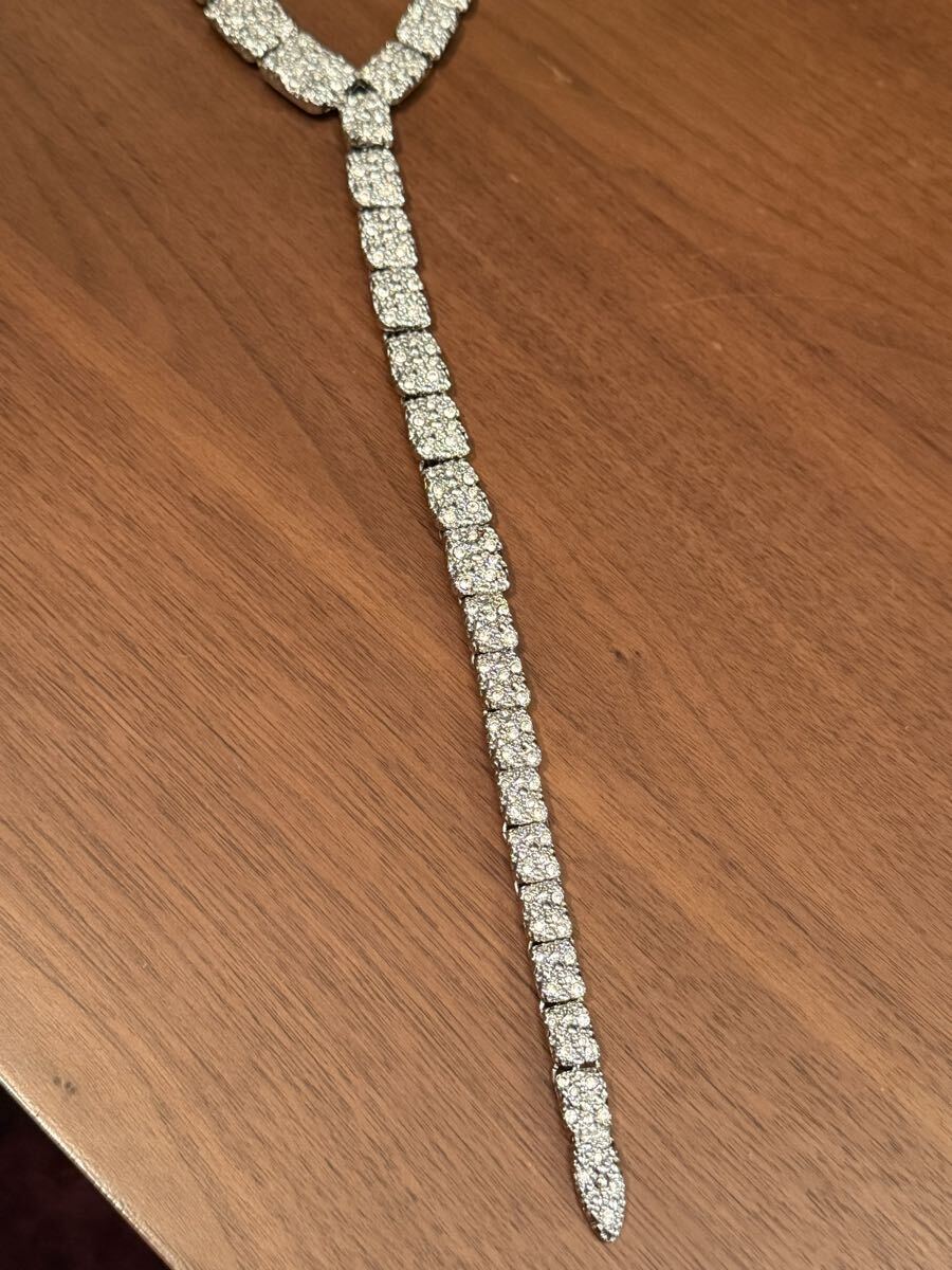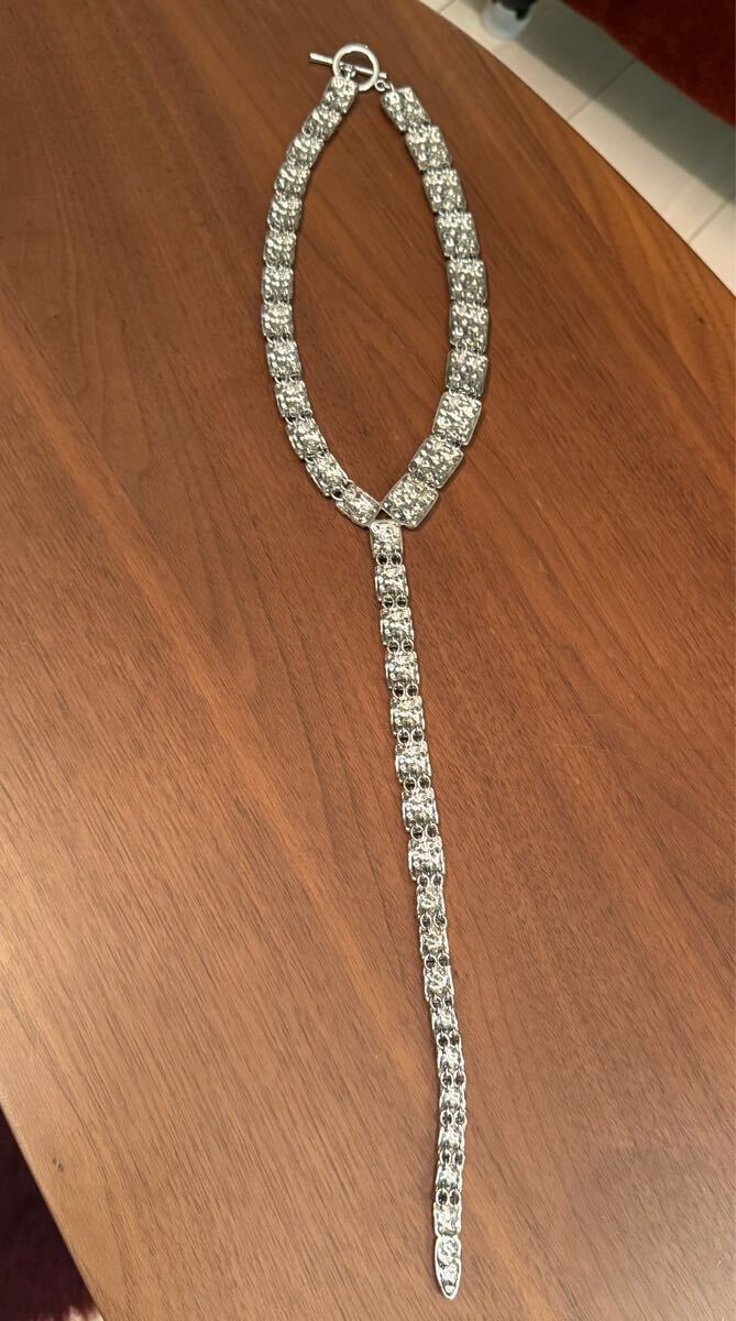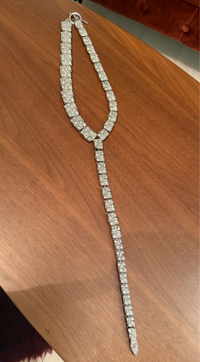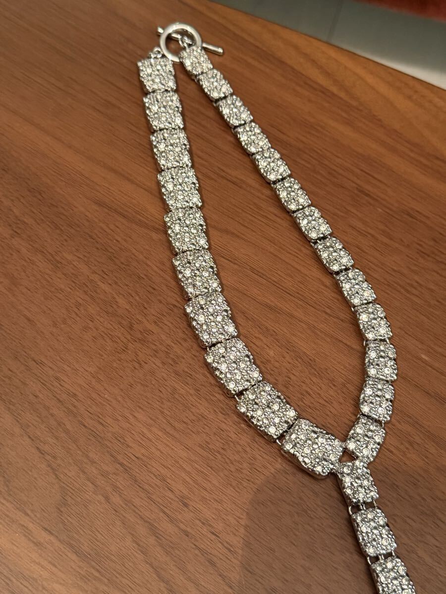 ラインストーンが散りばめられた立体感のあるメタルのラリアットネックレスです。