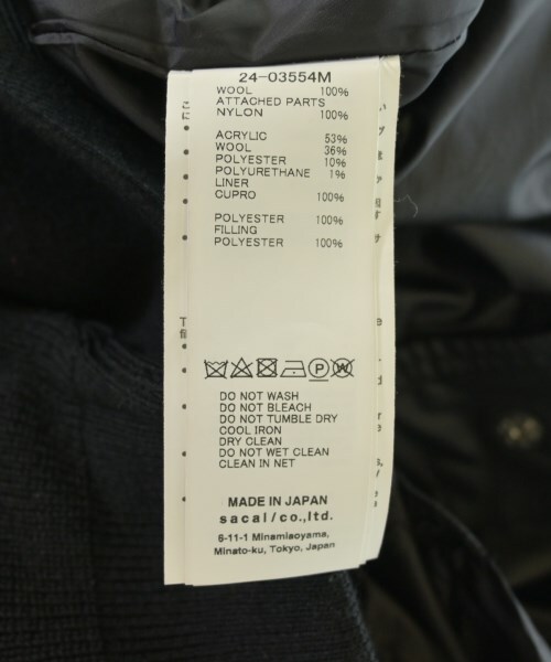 | 毛100%、(別布1)ナイロン100%、(別布2)アクリル53%、毛36%、ポリエステル10%、ポリウレタン1%、(裏地)キュプラ100%、(裏地2、中綿)ポリエステル100% |