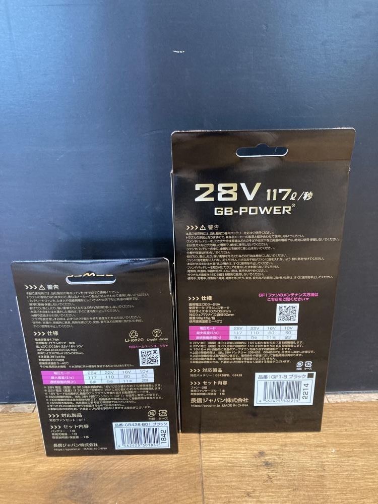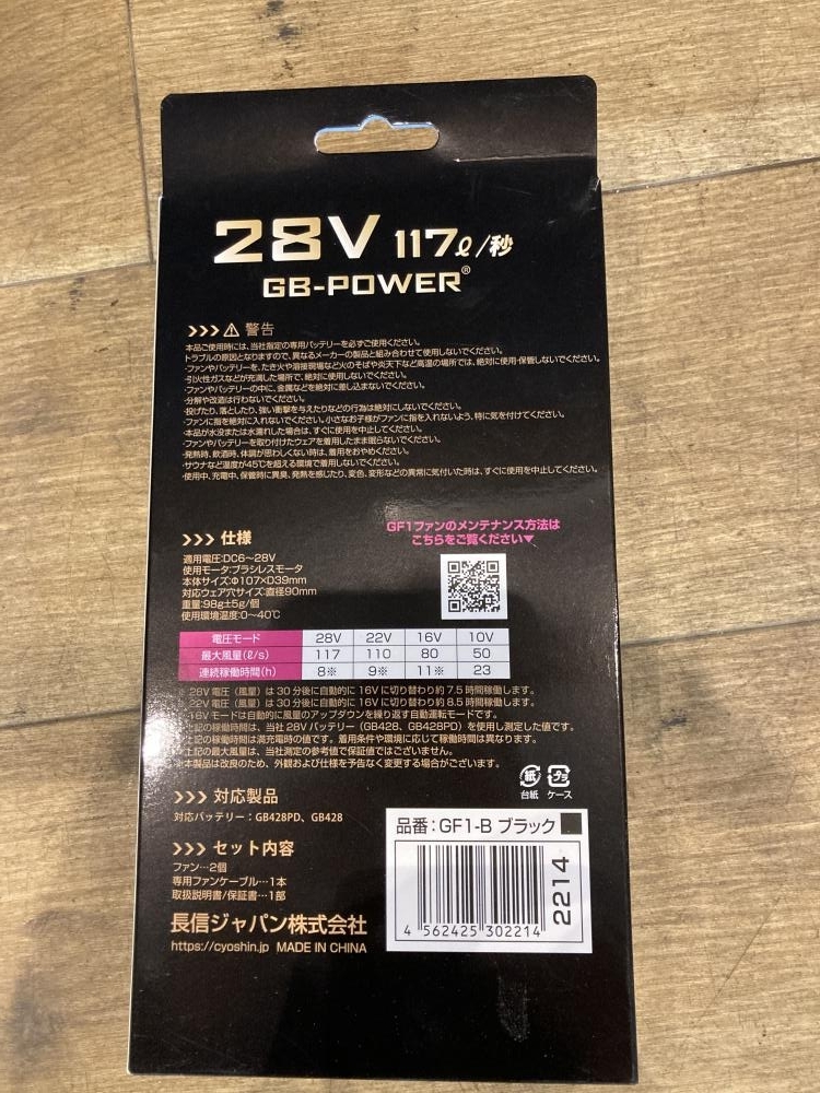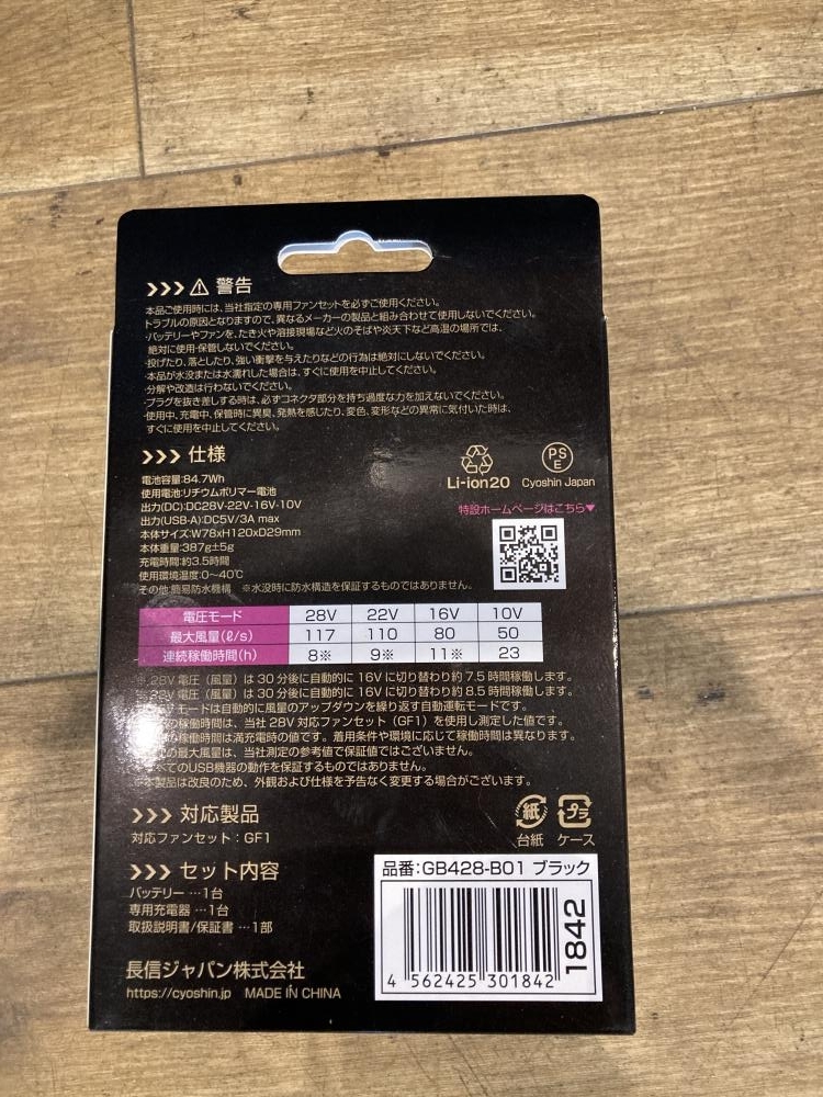 長信ジャパン ■商品名 空調服用バッテリ+ファンセット ■型番 GB428-B01+GF1-B |