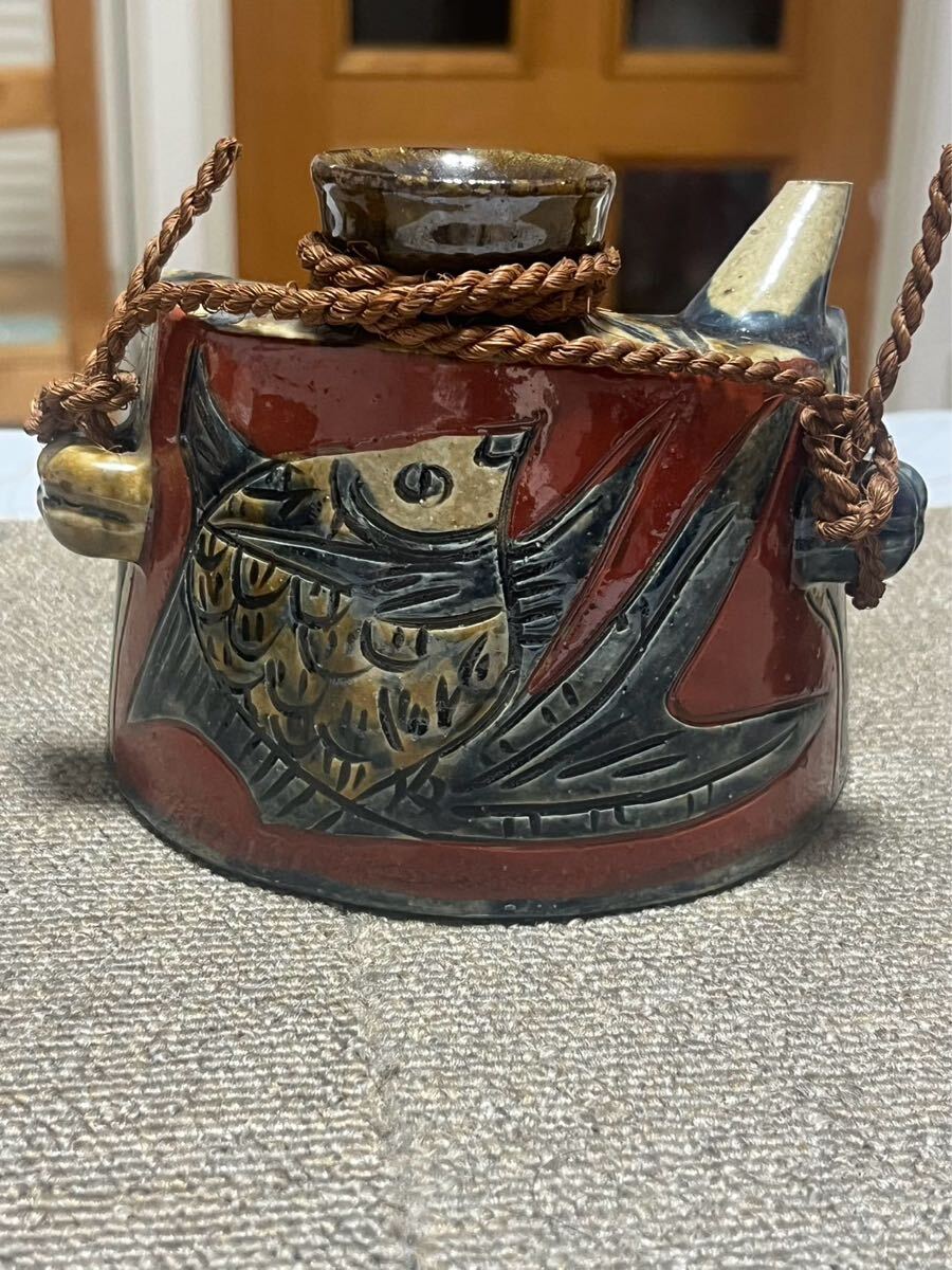 抱瓶 酒器 沖縄 壷屋 金城敏男 陶器ボトル 壺屋焼魚紋抱瓶 沖縄陶磁器 魚文 オブジェ 琉球 花瓶 だちびん