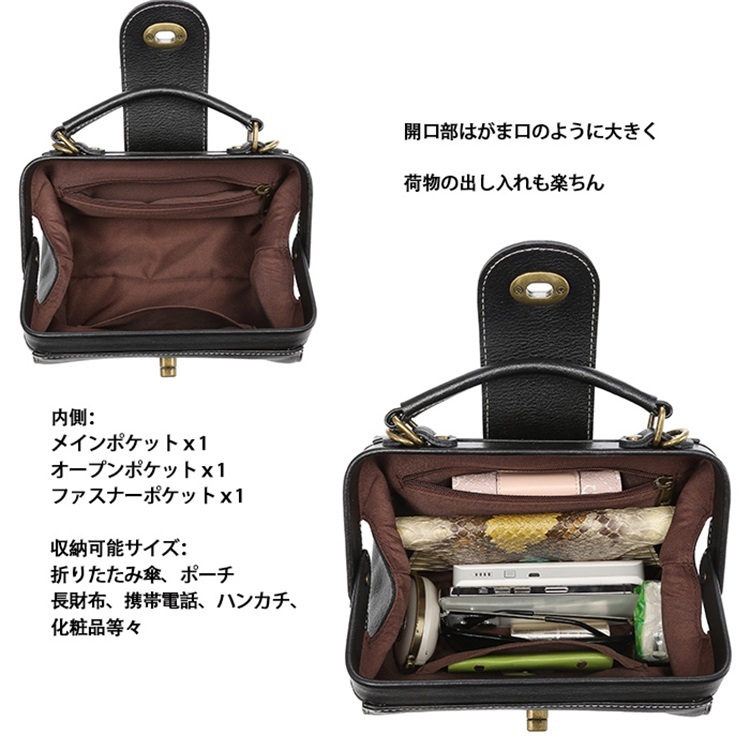 □収納可能サイズ: 長財布、折りたたみ傘、携帯電話、ポーチ、ハンカチ、化粧品