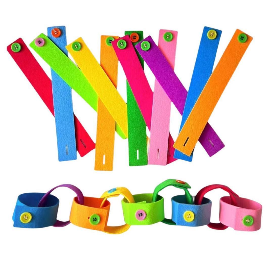 ・フェルト素材は柔らかく、手に馴染みやすい厚みで安全性も高め ・各ストラップに異なる色のボタンを配置し、視覚的な識別力を刺激 ・ボタンのサイズや形状にバリエーションがあり、難易度調整が可能 ・木製トレイは滑り止め加工済みで、安定した作業環境を提供 ・保育現場や家庭での知育遊び、療育支援にも活用されている実績あり