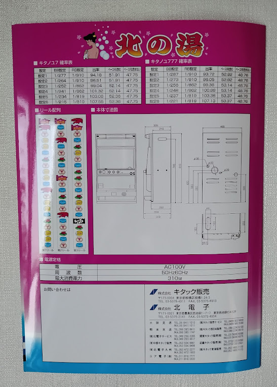 北の湯 カタログ ◆ 北電子 Kitac パチスロ 4号機 レア レトロ パンフレット 非売品 同梱発送可