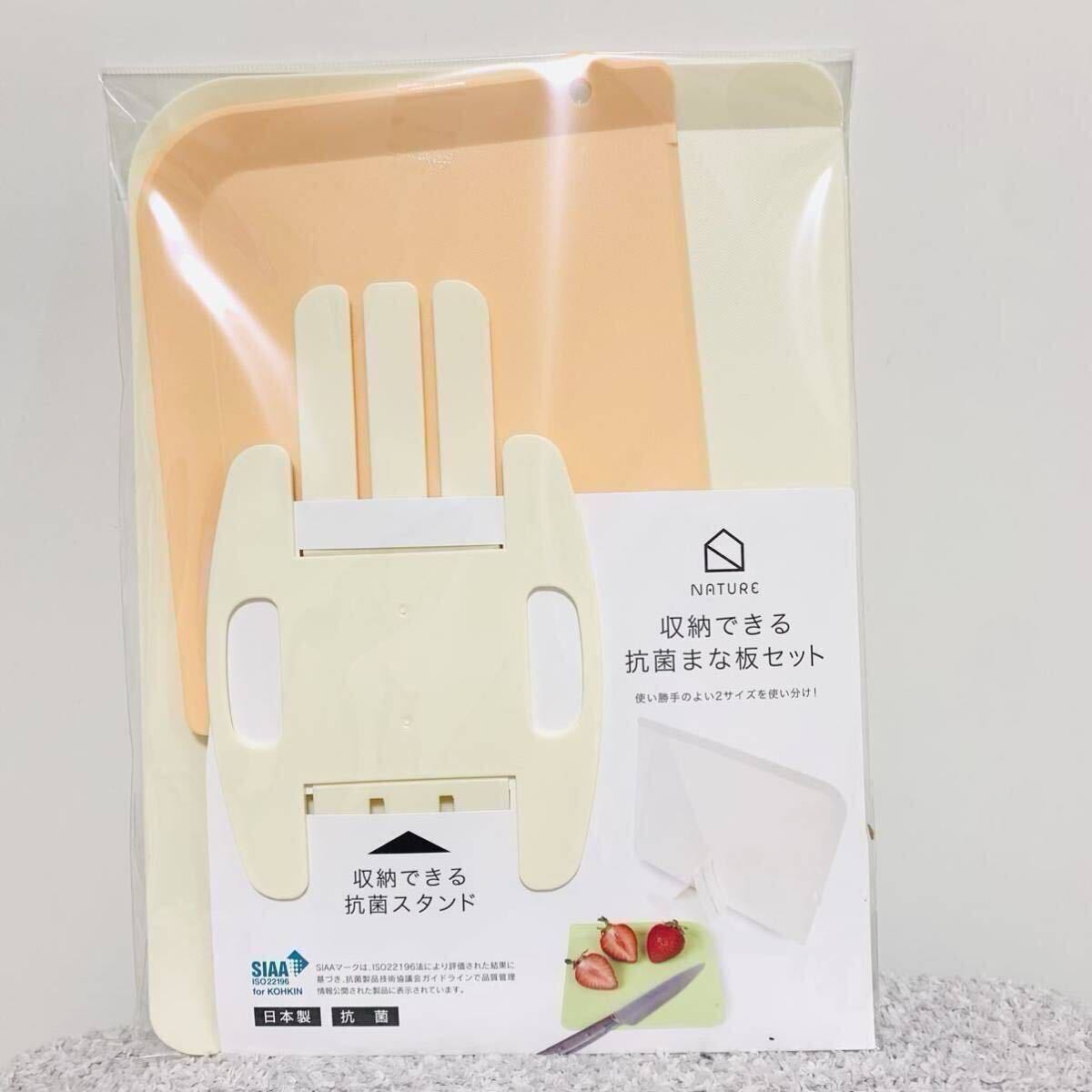 使い分けできるサイズの違う2枚の抗菌まな板とまな板スタンドのセット。