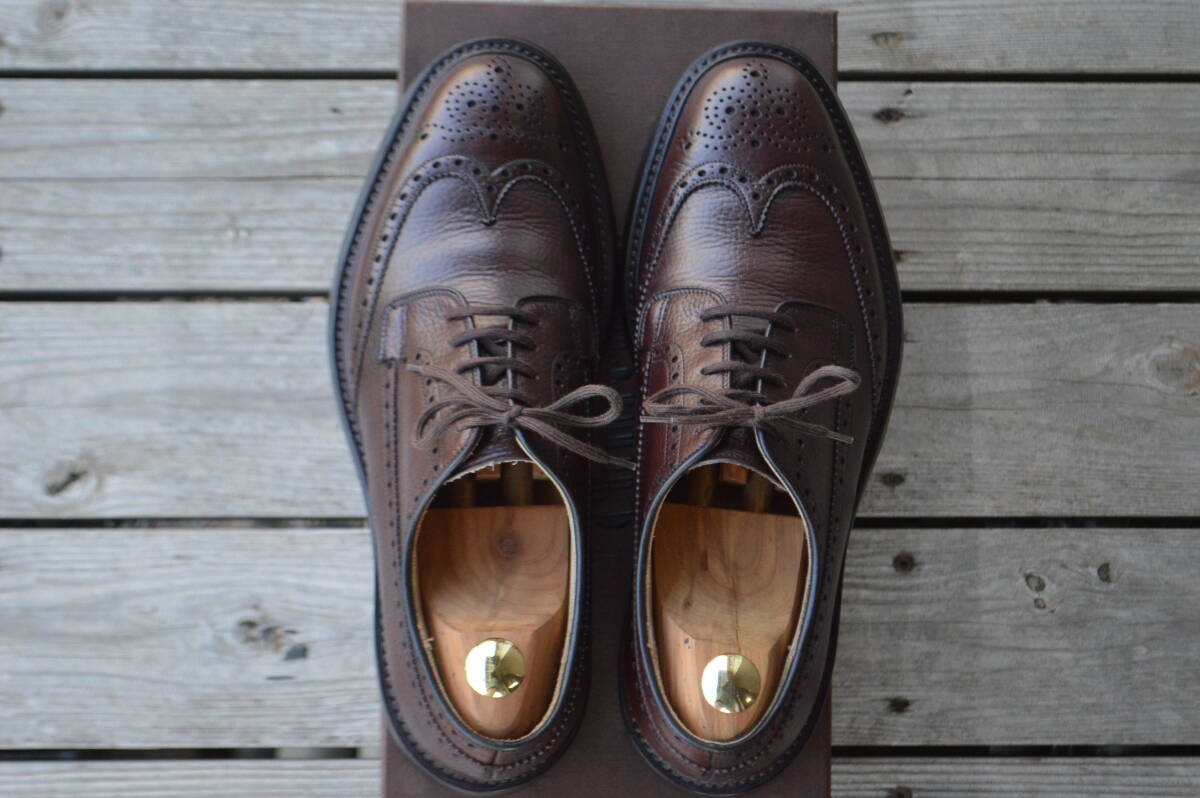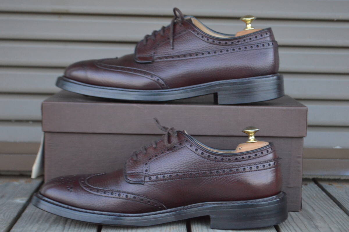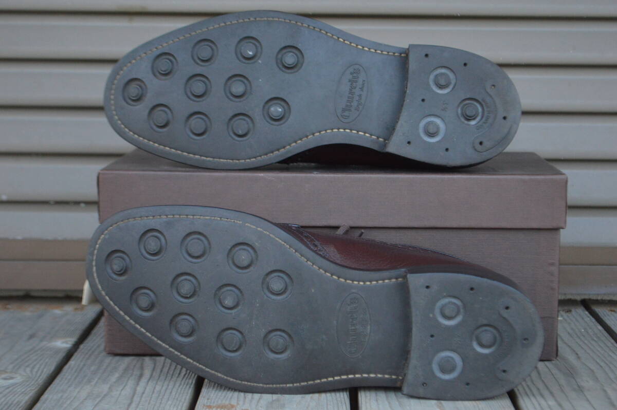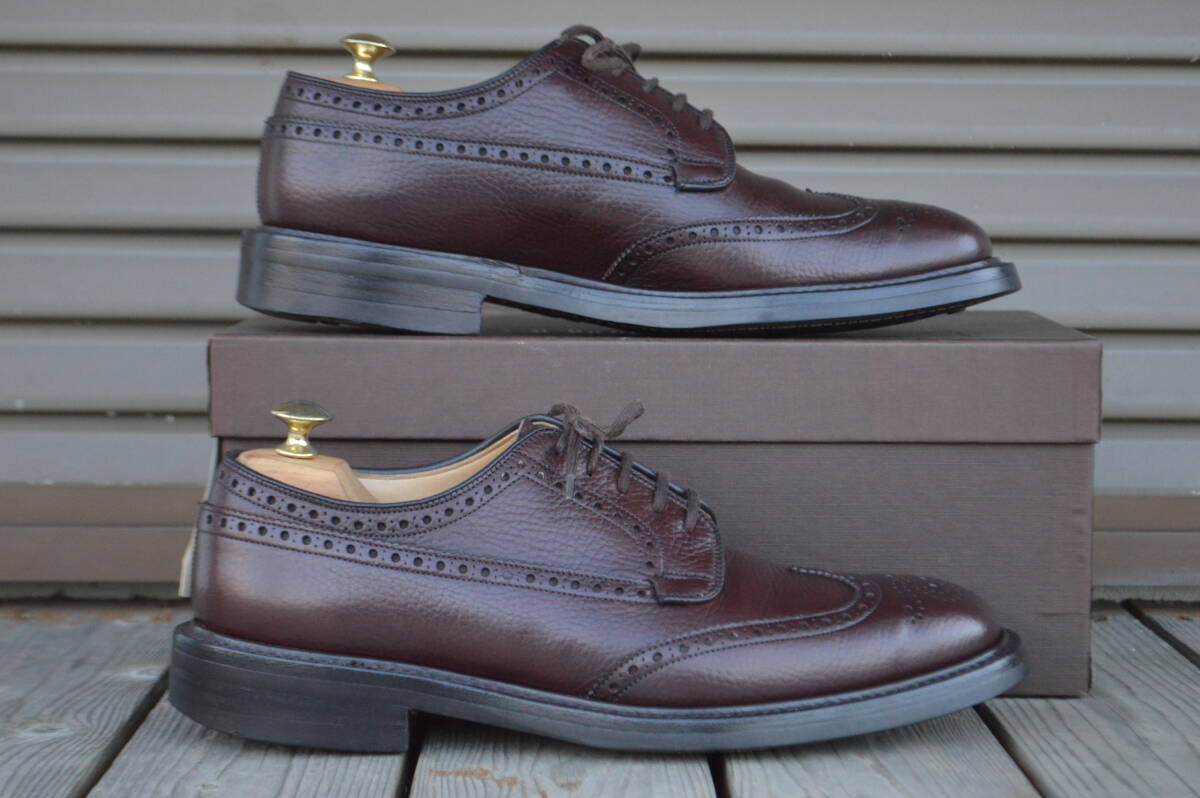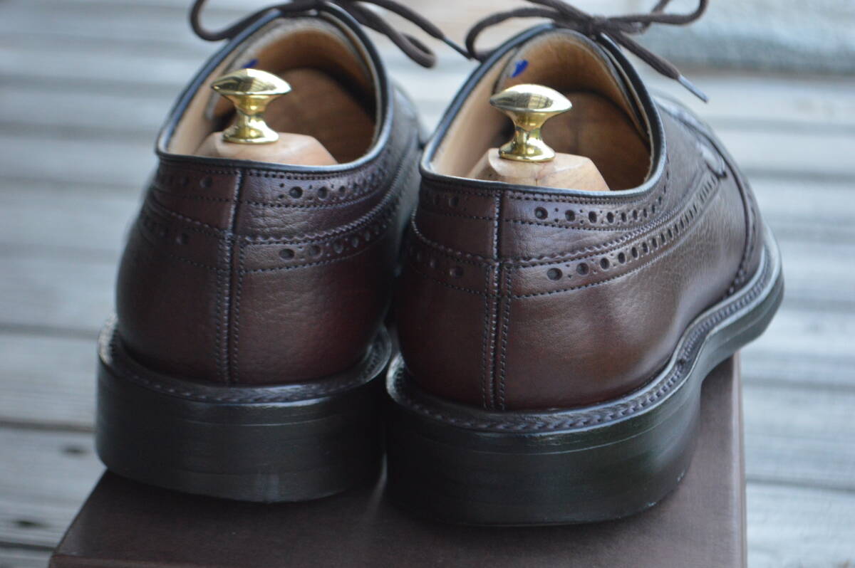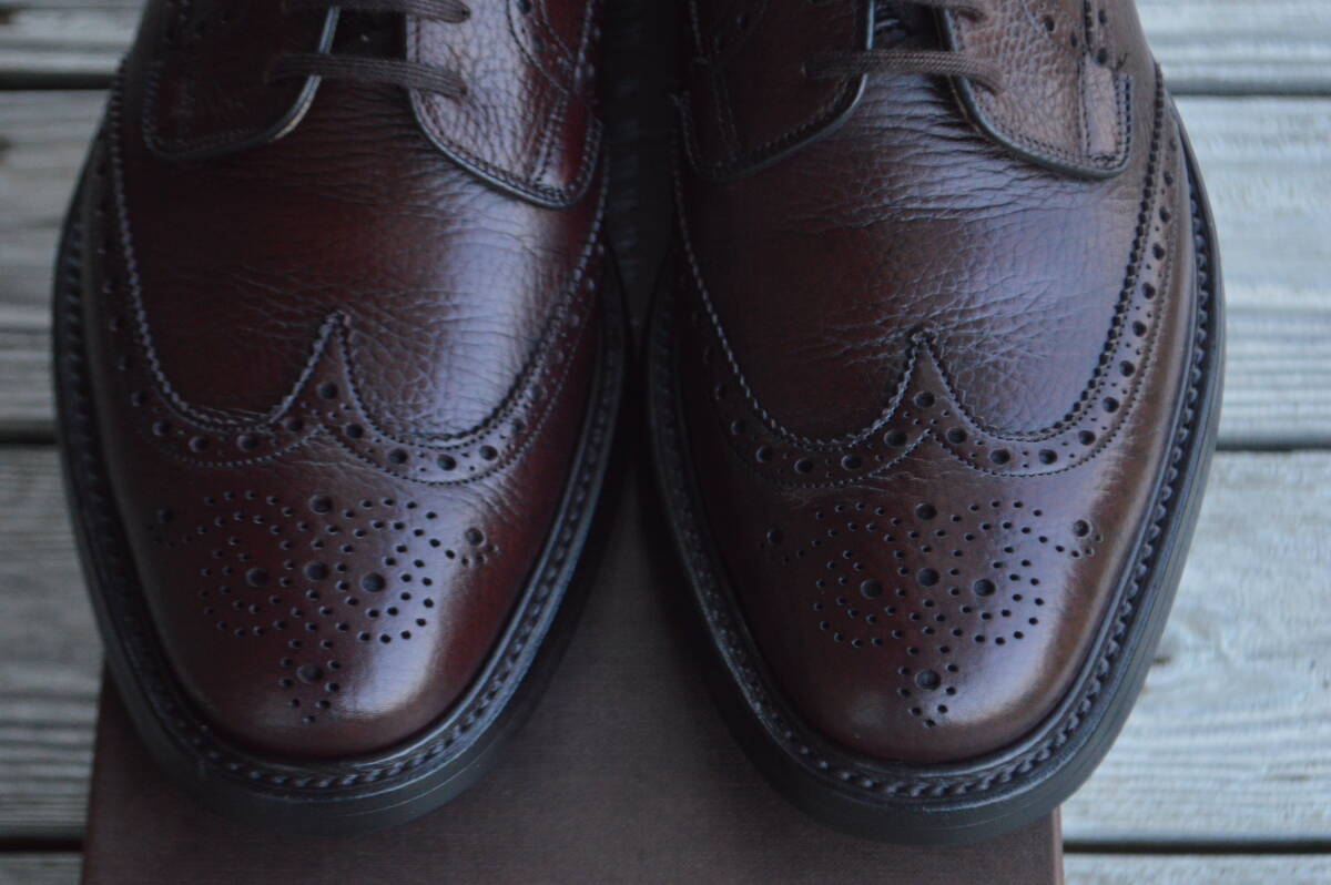 カラーもエボニーのような赤茶系のダークブラウンで、ランチオックスハイドという、旧チャーチでよく使われたグレインレザーを使用しています。