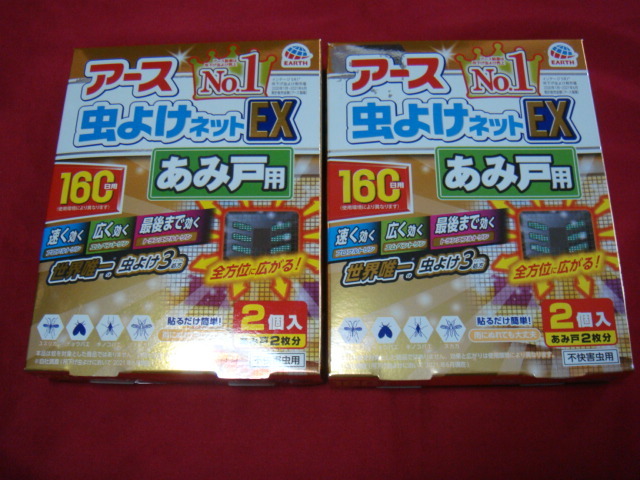 アース虫よけネットEX^,,.(あみ戸用)160日間“速く・広く・最後まで効く*世界唯一の虫よけ3処方”全方向に広がる・2個入2個,,^「未使用品」