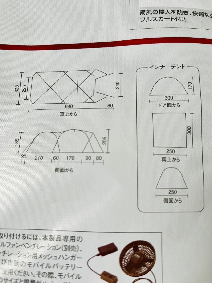 ■材質:フライシート/ポリエステル(耐水圧約2,000mm)、インナーテント/ポリエステル、フロア/ポリエステルオックス(耐水圧約2,000㎜)、メインポール/アルミ、キャノピーポール/スチール
