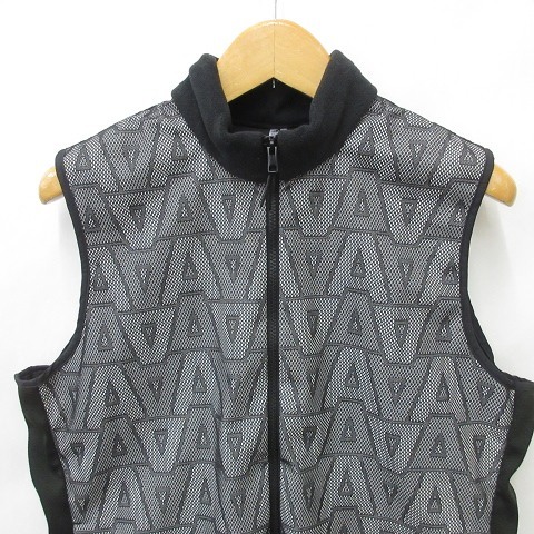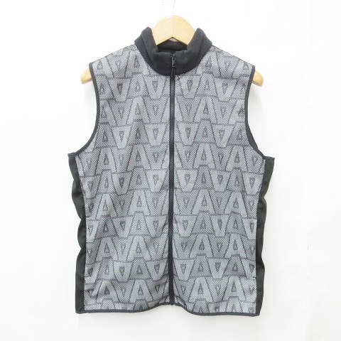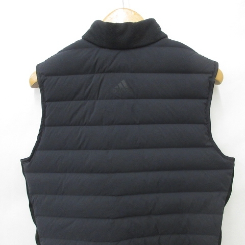 アディダス adidas ゴルフ スポーツウエア ダウンベスト ジップアップ スタンドカラー 起毛 防寒 グレー 黒 ブラック L メンズ