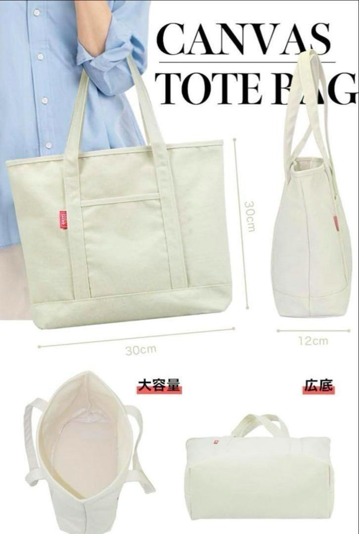 【キャンバストート】シンプルなデザインと無地の帆布素材が、このバッグをファッショナブル、シンプル、爽やかに見せます。
