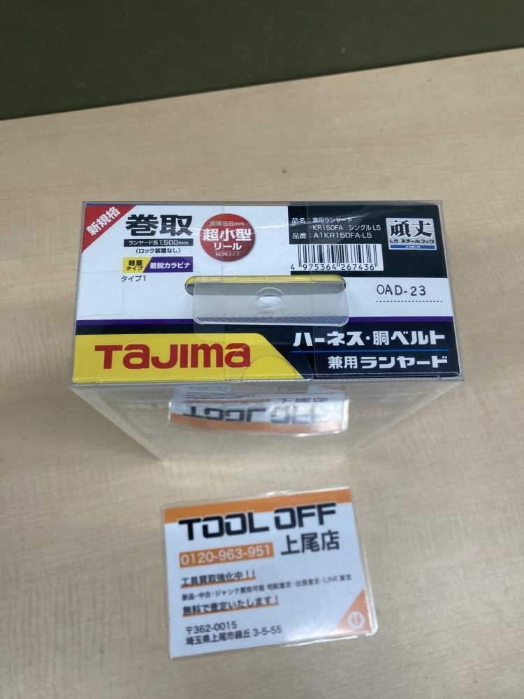 タジマ TAJIMA ■商品名 ハーネス 胴ベルト兼ランヤード ■型番 A1KR150FA-L5 |