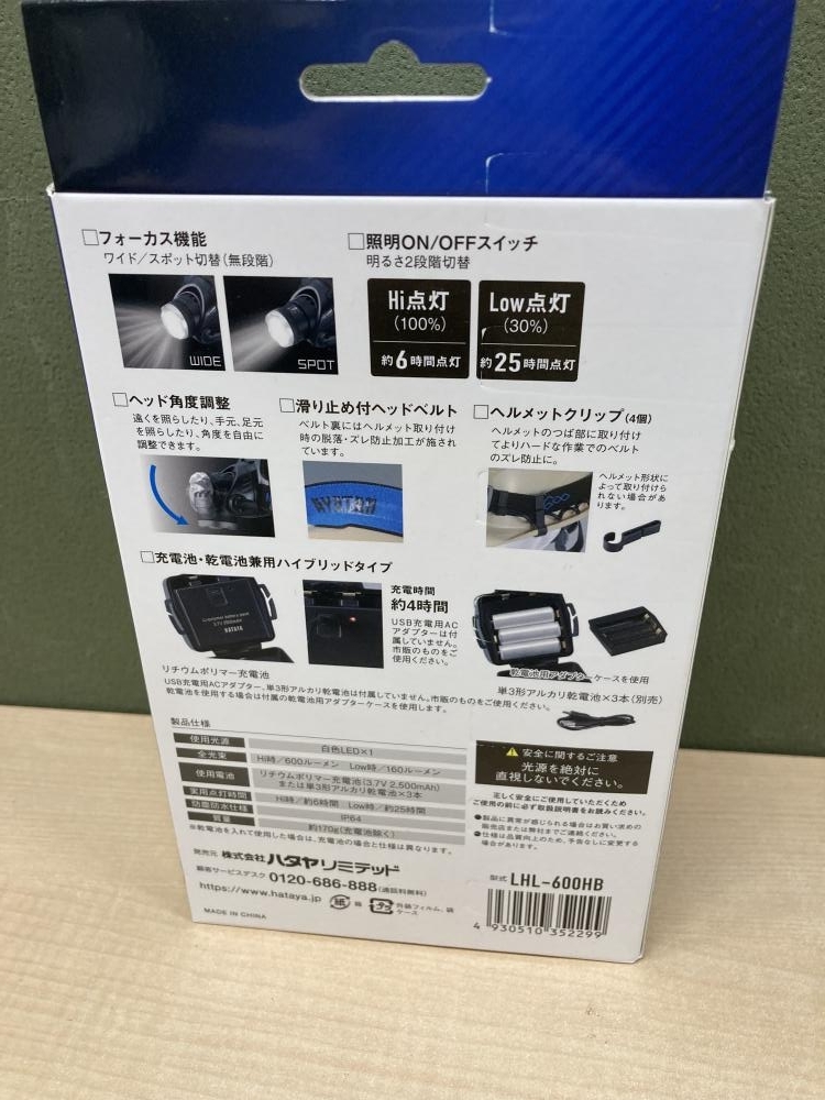 HATAYA 畑屋 ■商品名 LEDヘッドライト600 ■型番 LHL-600HB |
