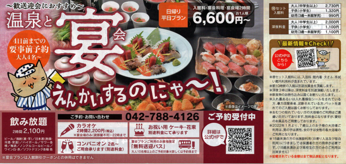 ご利用可能店舗 | 東京・湯河原温泉 万葉の湯(町田館)のみ有効 |