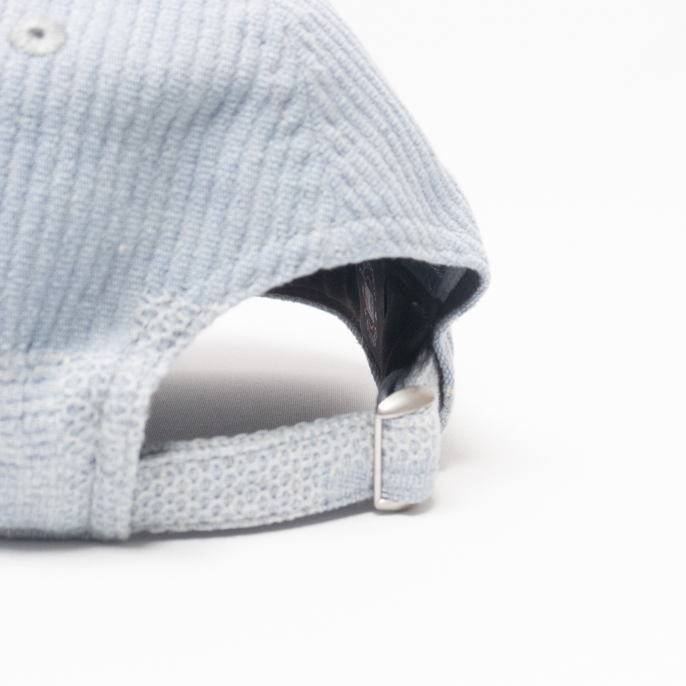 織り柄が特徴的なデニム生地にチームロゴのパッチを配したデザイン。
