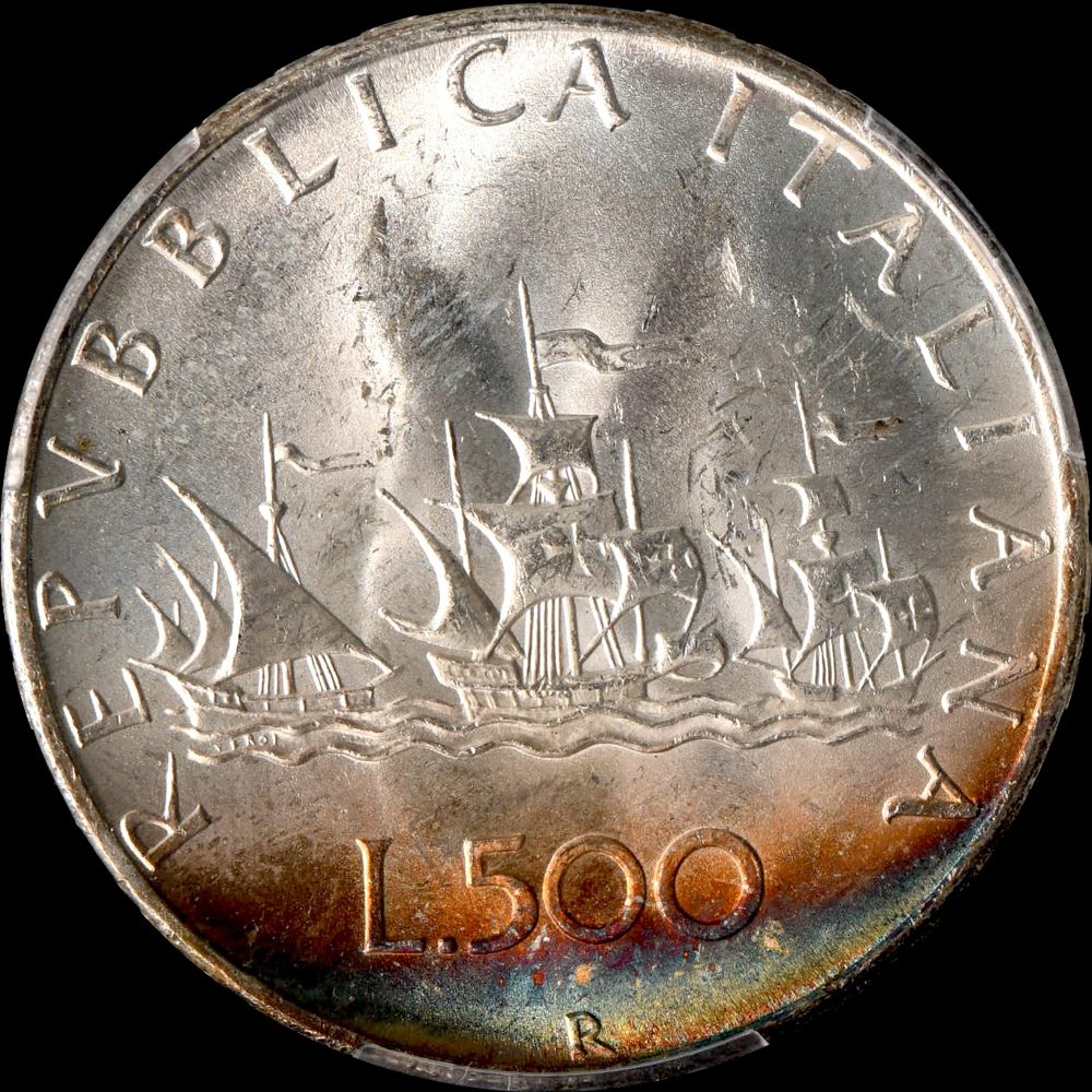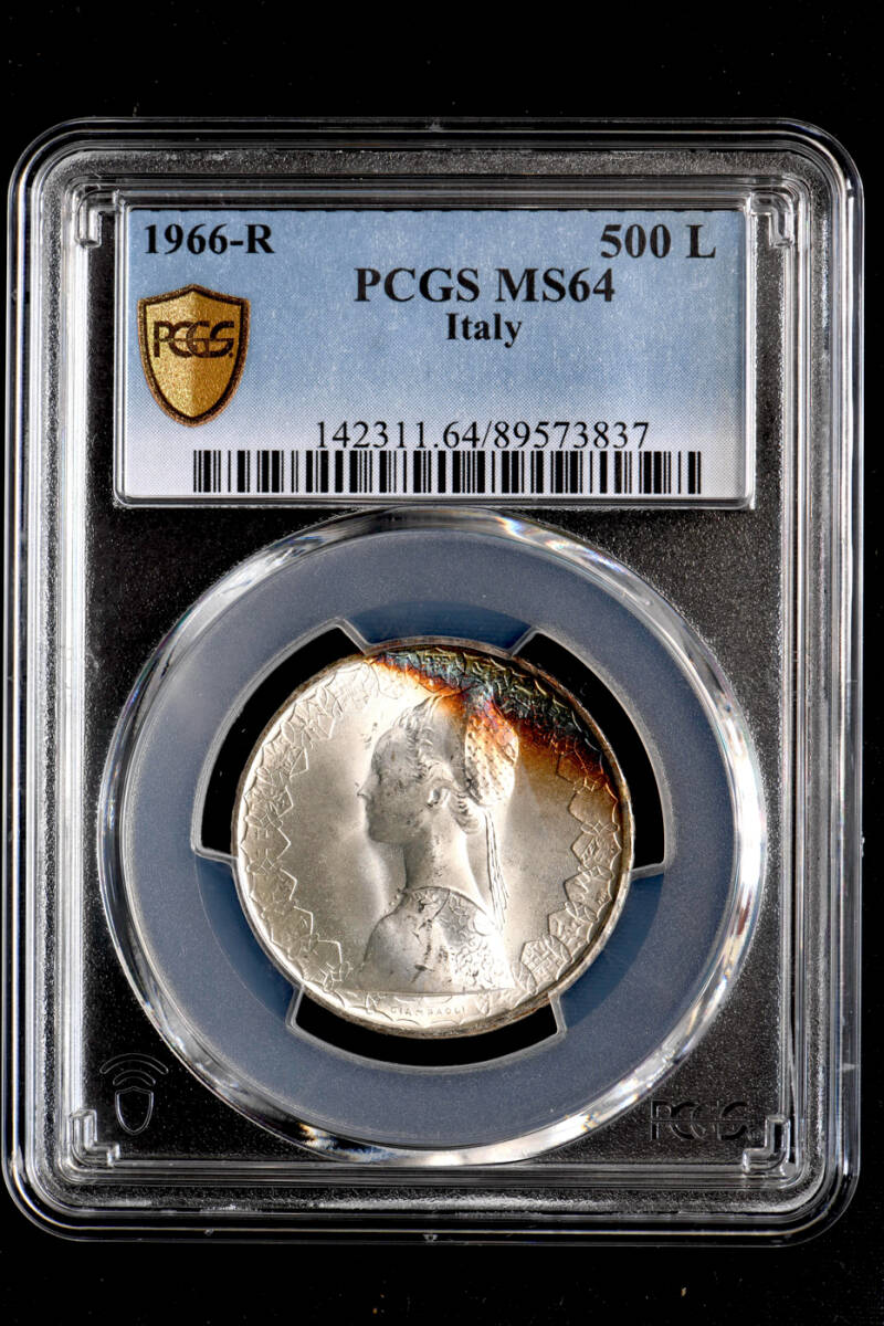 ★日終 【PCGS MS64】1966-R イタリア 500L銀貨 未使用+ //世界コイン 古銭 貨幣 硬貨 銀貨 金貨 銅貨【決済期限火曜日】
