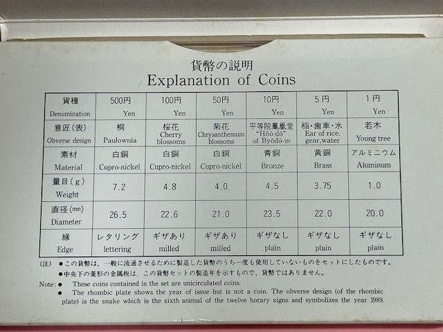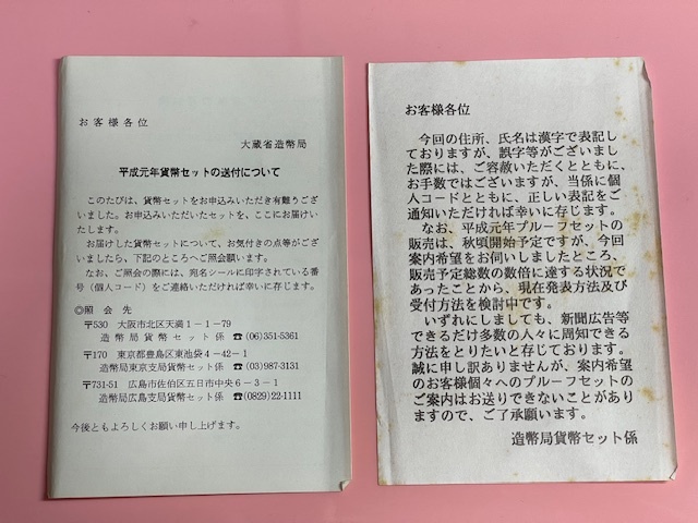 平成元年 貨幣セットです。掲載画像のとおりです。