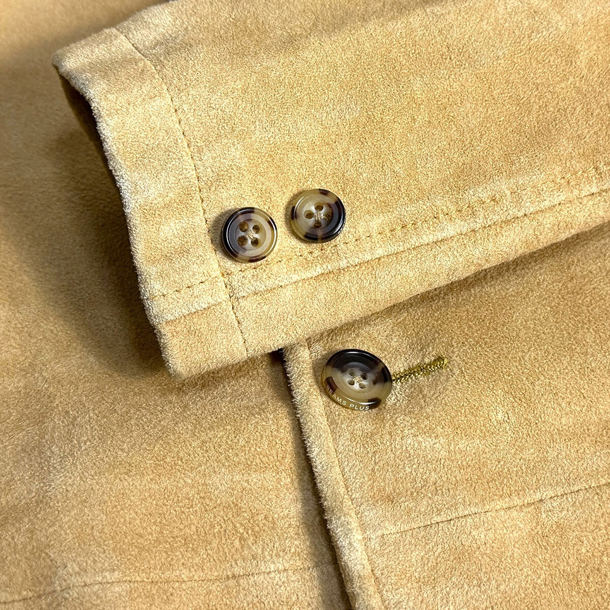 商品について:ゴートスキン(山羊革)のスエード(スウェード)、つまりゴートスエード地を使用したI型ジャケット。着込んで行くと味が出やすいゴートスエードだそうです。皮革製のI型ジャケットは珍しいのでは。いずれも、身幅はそれほど細くはなく、着丈も普通くらい。ビームス・プラスはこんな感じのサイズ感です。