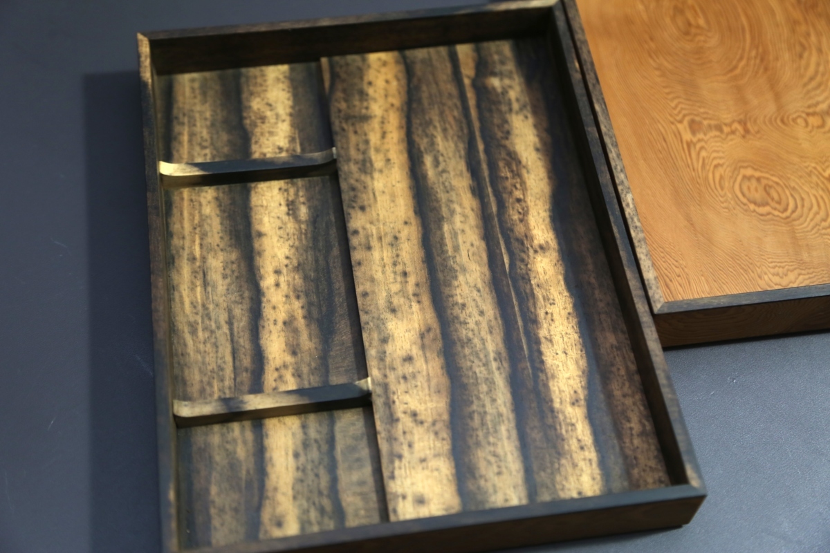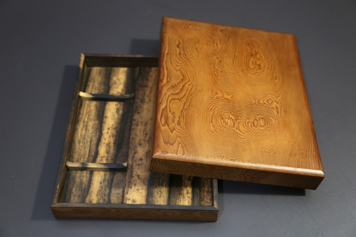 ★★★ 飛騨高山指物師 岩瀬松斎作 一位 内黒柿 硯箱 ★★★