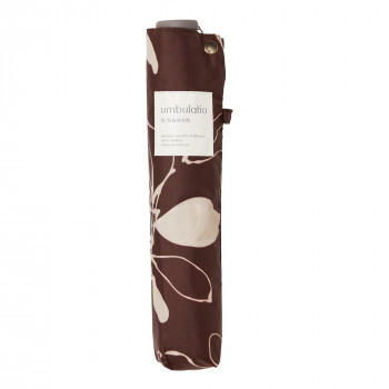 | 持っている事を忘れてしまうような軽さ、しかも屋根みたいに守ってくれる大きさです。リーフはラフなタッチで描いたリーフパターン。シックなカラーリングでオフィススタイルにも合わせやすい。 |