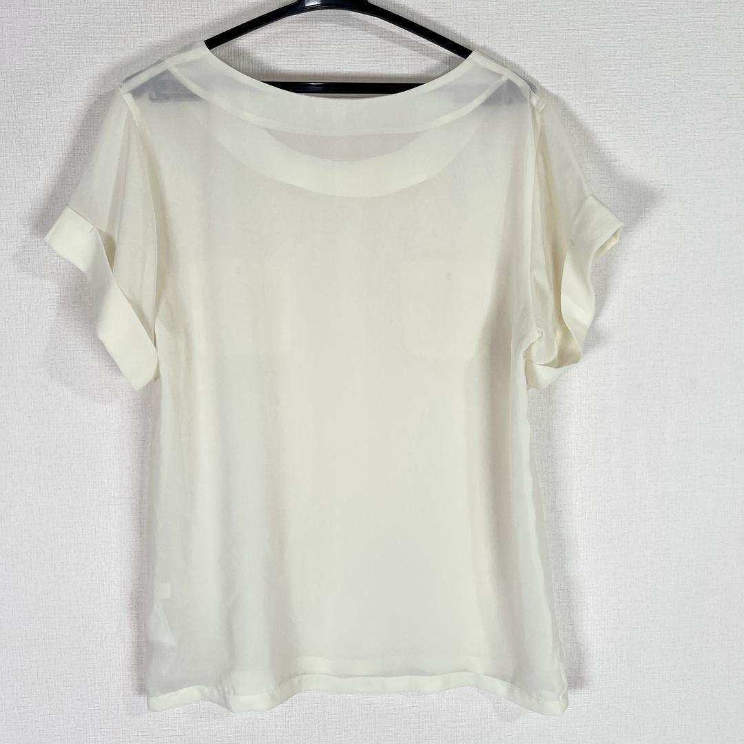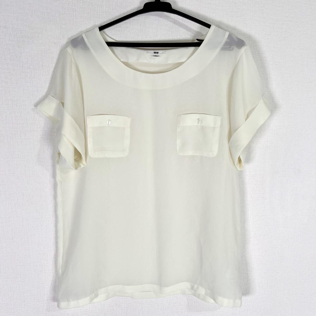 【ユニクロ】UNIQLO オフホワイト 半袖 カットソー シアー トップス シースルー 透け感 レディース Mサイズ【a009】