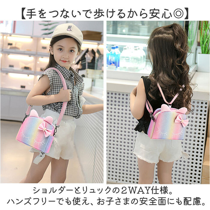 | 商品説明 | ・・【おしゃれ女子にぴったりのバッグ☆】 ・ネコ耳×リボンでキュートさ満点♪ 2wayキッズショルダーバッグが登場。 ・【お出かけ気分をルンルンに☆】 ・ちょこんとお耳がキュートな、コンパクトなバッグ。お出かけコーデにプラスして気分をUP♪ ・【手をつないで歩けるから安心◎】 ・ショルダーとリュックの2WAY仕様。ハンズフリーでも使え、お子さまの安全面にも配慮。 ・【型崩れしにくい作り】 ・バッグは自立して型崩れしにくい、しっかりした作り。小さいお子様でも扱いやすい仕様。 ・【大きく開くファスナー口】 ・大きく開くから、荷物の出し入れがしやすい。ファスナー仕様で中身が飛び出さない! ・【ちょうどよいコンパクトさ】 ・大きすぎず小さすぎないので、お出かけの荷物をちゃんと収納。自分だけのバッグで大人気分! ・【ポケット仕様】 ・メイン:ファスナーポケット×1 |