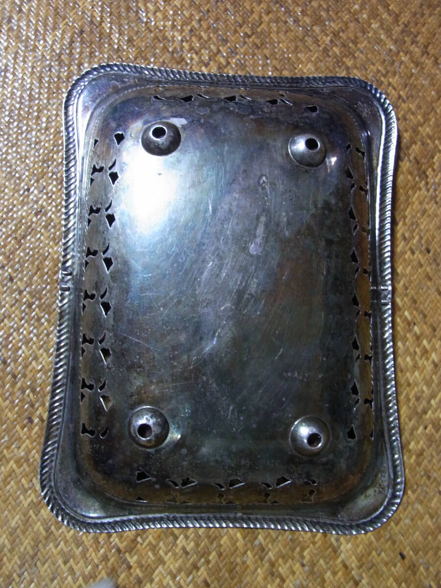 年代物。L:22.7 W:16.7 H:3.3cm位。「yeoman plate.silver plated on brass.made in england」と刻印があります。年代のさびがあります。ノークレーム、ノーリターンでお願い致します。