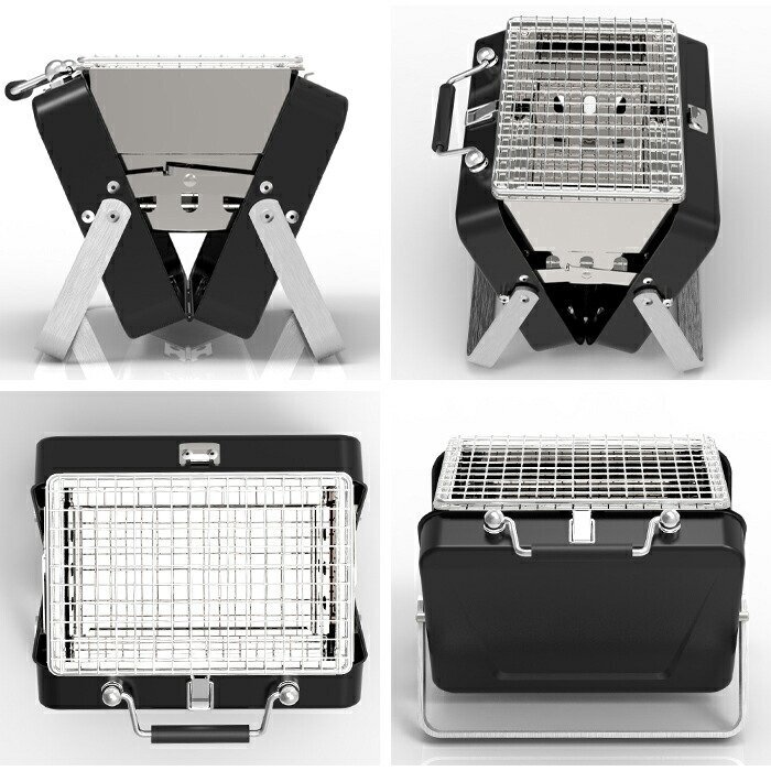 訳あり★新品◆バーベキューコンロ 折りたたみ コンパクト 小型 BBQ 卓上グリル トランク型 アウトドア キャンプ###コンロX19-06-BK###