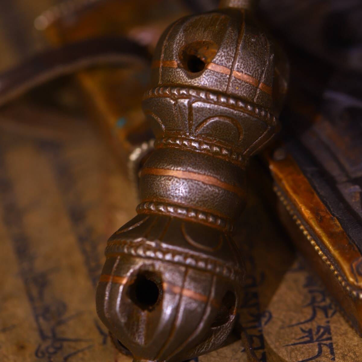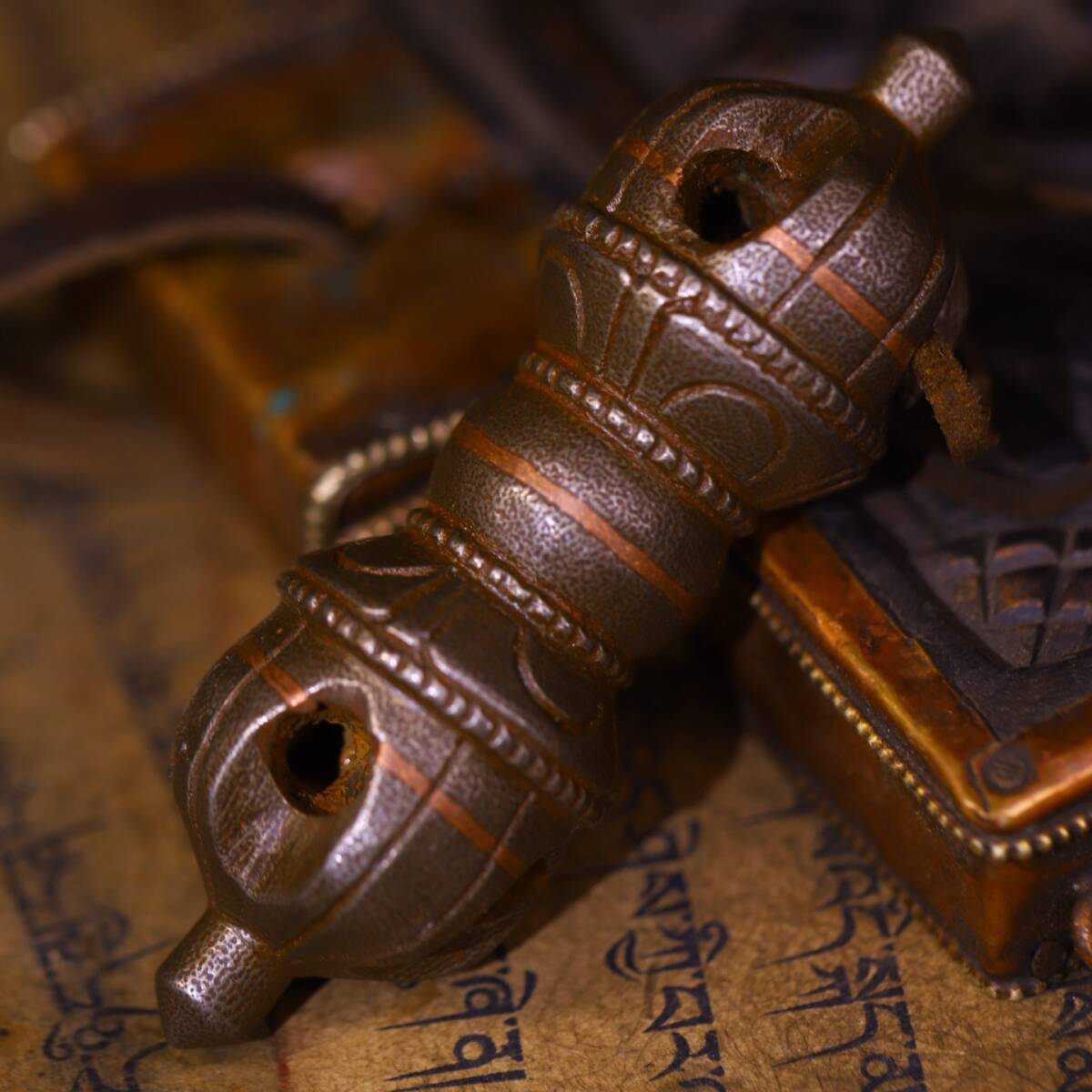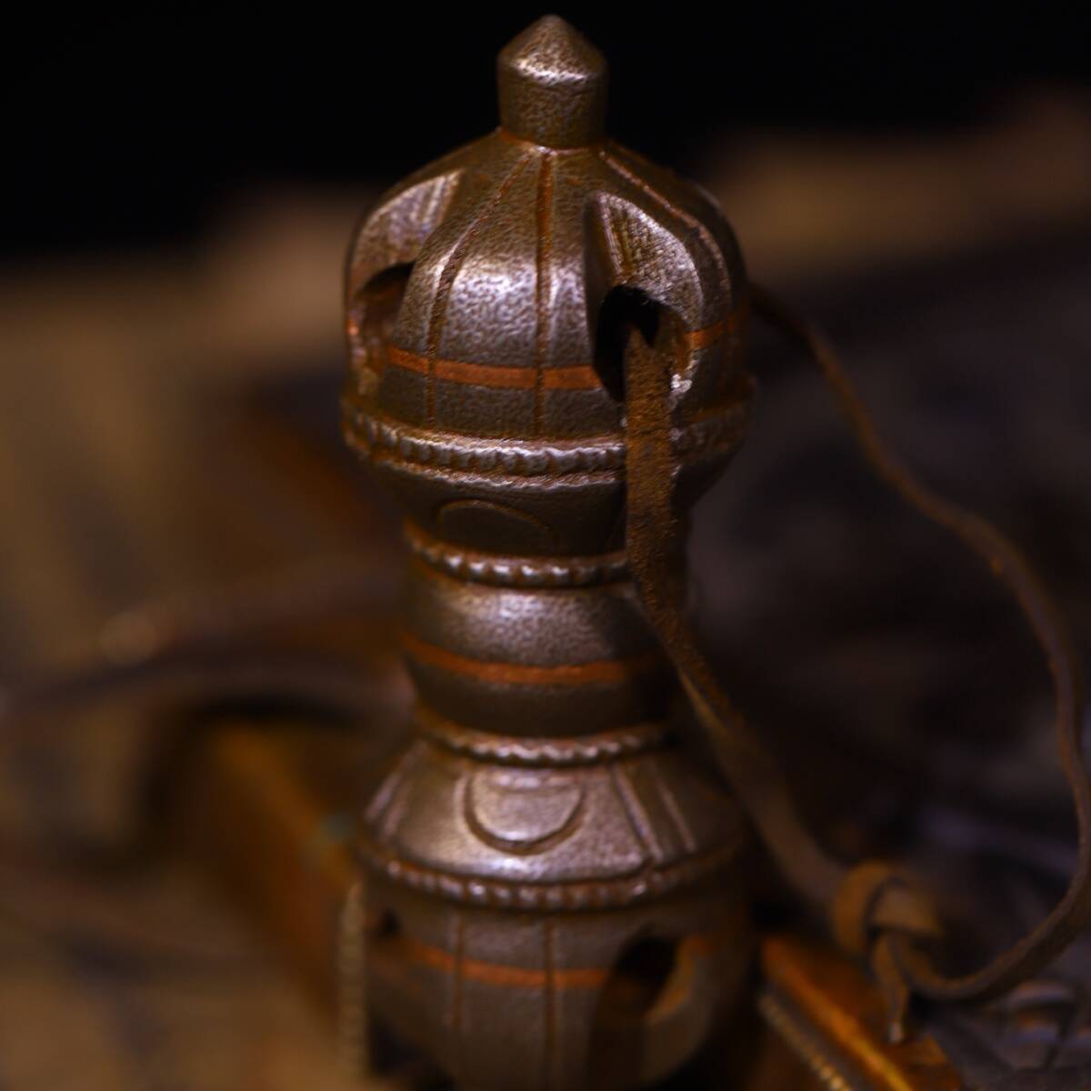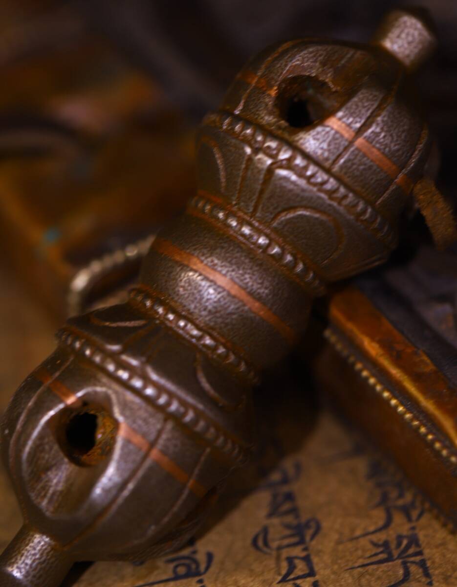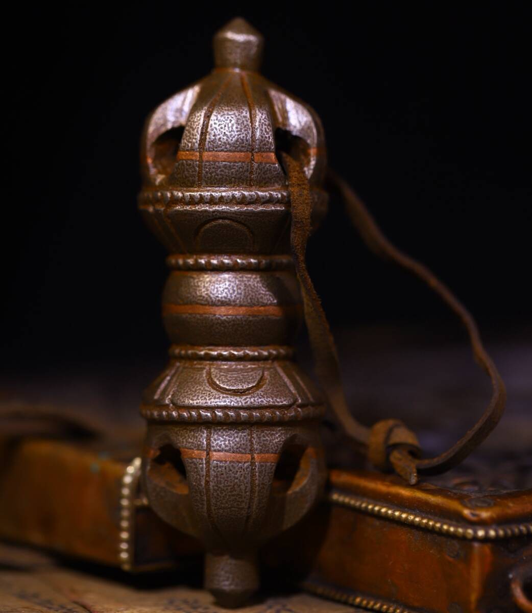 唐物 清 天鐵 純手工敲打 鏨刻磨損痕迹明顯法器 極細工 古美術品 時代物 中国古玩 骨董品 D68
