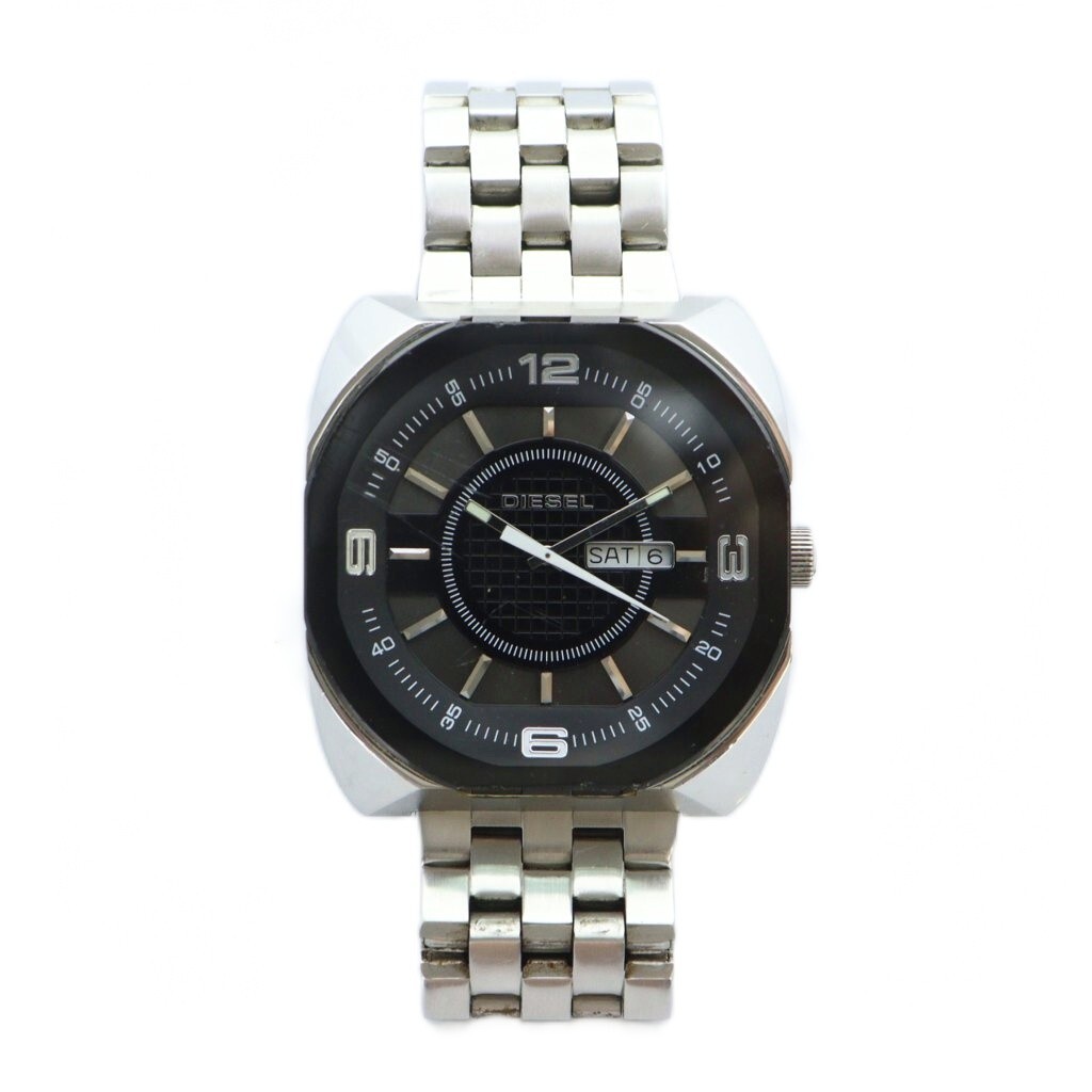 ディーゼル DIESEL 腕時計 ウォッチ クォーツ ロゴ 黒文字盤 カレンダー付き シルバー色 DZ-1170 ■GY18 /MQ メンズ