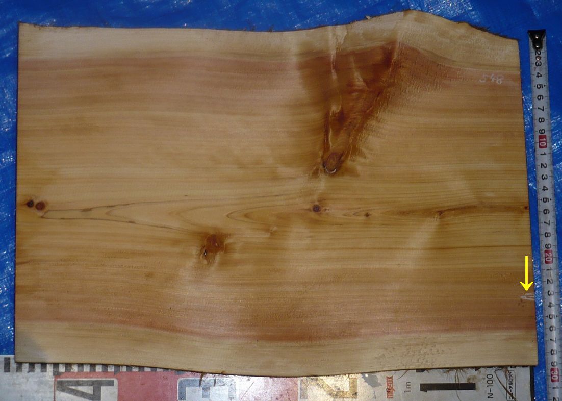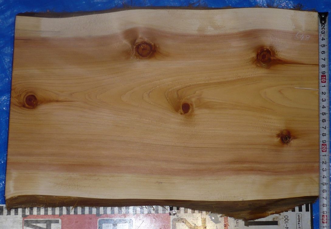 ★桧 天然ヒノキ★色濃い材・厚42mm 年輪が細かい【548】綺麗な杢目★ ●サイズ● 長さ410mm・幅240~260(295)mm・厚42mm・・★ (多少の誤差が在る場合が有ります.) ●状態● 傷・ヒビ割れ・木口割れ・欠け部分・線香虫/虫食い跡・シミ部分・鉋傷(逆目・段差)、その他見落としがある場合もございます。 2面プレーナーに通してありますが、刃こぼれ跡のライン・傷が在るかも?。 (プレナー加工は反り落とし、厚みだしですので刃の状態、木肌の質により逆目や毛羽立ちなどはございます。) 木目を見るために水で濡らして撮影しています。 乾燥15年材・画像を良くご覧下さい。 ●注意事項● ◆◆当店の出品は完成品では有りませんので、木工用・DIY材料としてお使いください。◆◆ 割れ・節・傷・汚れ・反り・虫食い跡・サカメ・プレナーの段付き等ありますので、 サンダー等で仕上げる前提でお願いいたします。 メジャー・定規は商品ではありません。 無垢材ですので傷・割れ・穴・虫穴・反り・捻じれ・変色・カビ・等がで在る事が在ります。 神経質な方の入札は、絶対にお断りします。 木目を見るために水で濡らして撮影しています。 ◆◆発送は出来るだけまとめて発送しますが、商品代金のお支払いは個別でお願いします。◆◆ オークション終了日より3日以内に連絡を頂ける方でお願いします。 3日以内までに連絡頂け無い場合は購入意志が無いと判断し 次点繰上げを行いますのでご了承ください。 その際にシステム上非常に悪いの評価が付くことはご理解ください。 ■送料について■ ・送料は元払い限定(着払いは対応していません)。 ***ヤマト便で発送致します。*** (80サイズで) **複数落札いただくと送料が割安になります (25kgまでは1個で発送いたします。) ***ご入金確認後、ただちに発送いたします。 ◆◆注意事項 ヤフーの落札メールにコメントがあります。◆◆ 当社の【URL】https://r.goope.jp/woodluck-suzuki