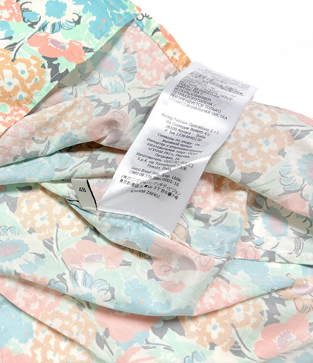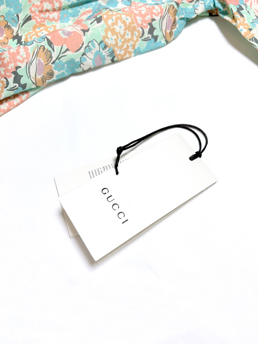 さすがグッチとリバティのコラボ、どちらも花柄が有名なブランドだけあって、花柄のセンスが素晴らしく、とても発色も美しく、丈の長さや袖の長さ、幅、衿の開き具合など完璧なバランスで仕上げられています。