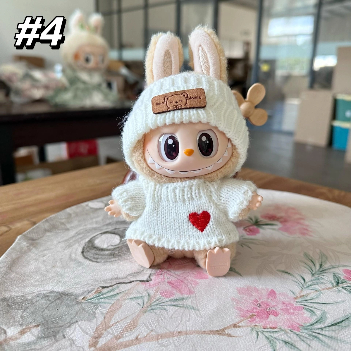 Labubu 17cm ドール服 坐坐パーティーシリーズ ぬいぐるみ 衣装のみ 本体ではない 愛の 帽子 セーター 着せ替え服 rt