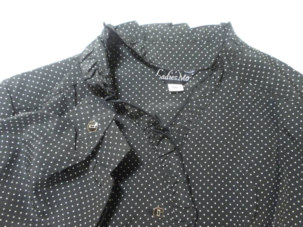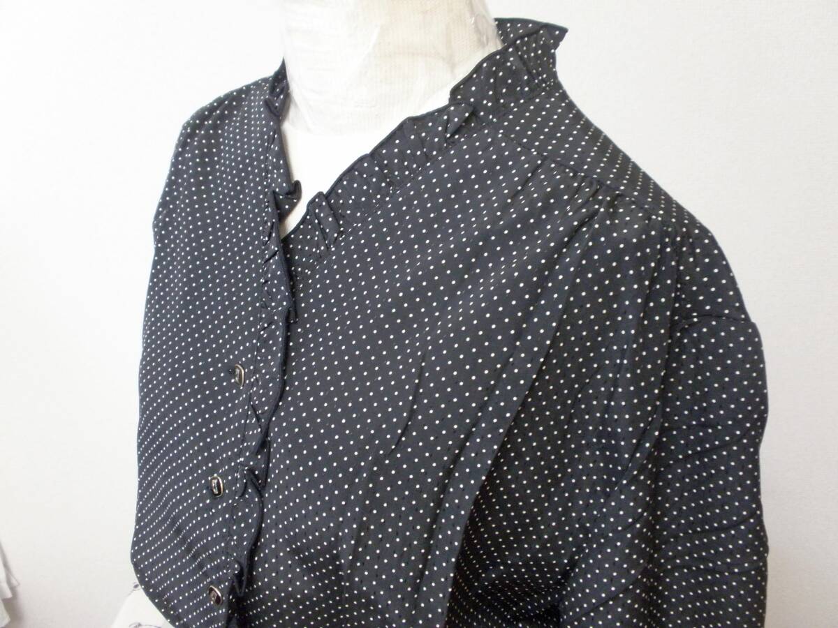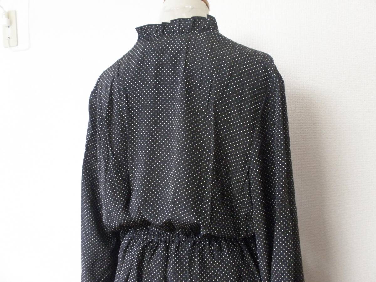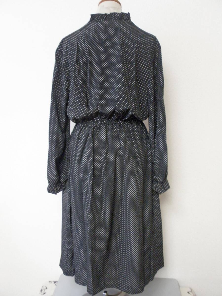 レトロ 古着 黒白 水玉柄 フリル ロング ワンピース★昭和 ヴィンテージ vintage クラシカル モード