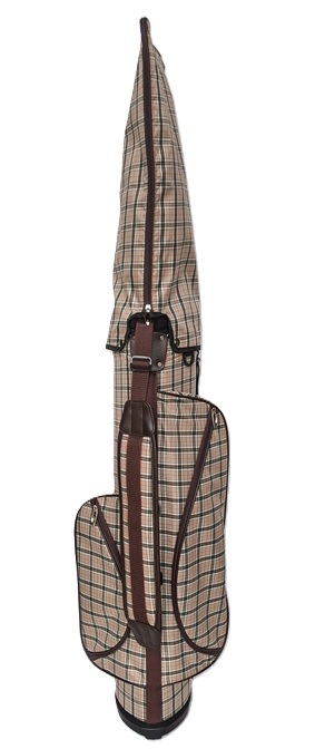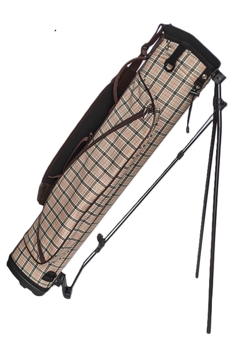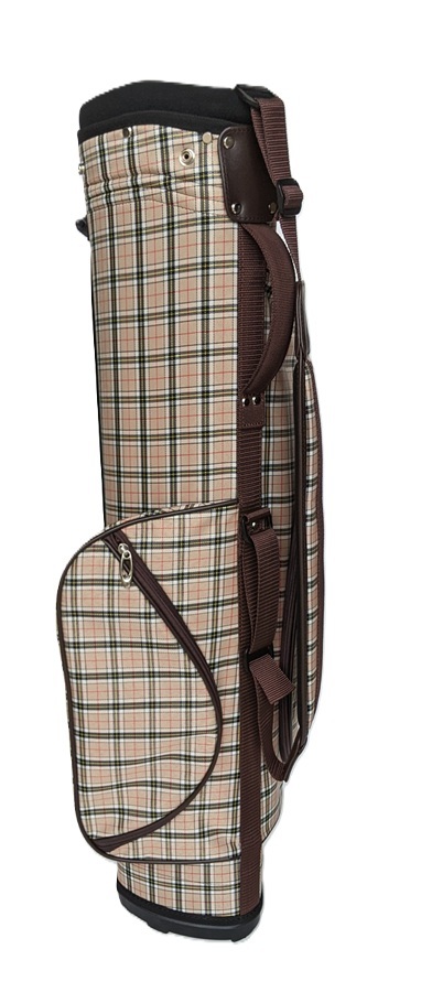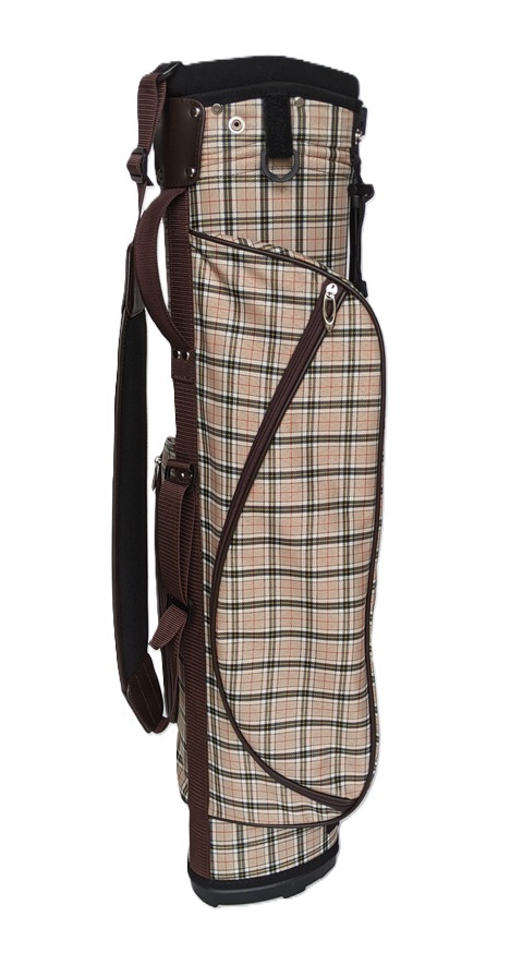 ショートコースや練習場で使うのに最適です。 専用のフードもついています。 左右に大小のポケットがあります。 <型>6.5型 <重量>約1.6kg <素材>ポリエステル+合皮 <カラー>ブラウン チェック <ロゴ>ロゴはありません。 <対応サイズ>47インチのドライバーが入ります。 <収納目安>7~8本くらいです。 |