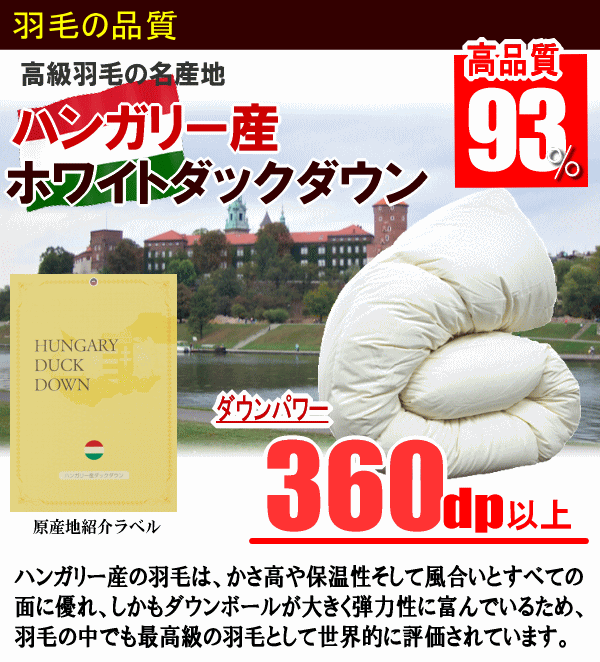 ■中身:ハンガリー産ホワイトダックダウン93% フェザー7%