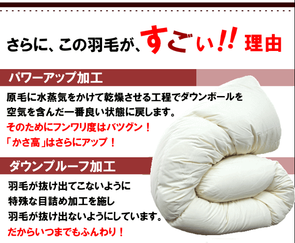 ■仕様:エクセルゴールドラベル、ダウンパワー360dp以上